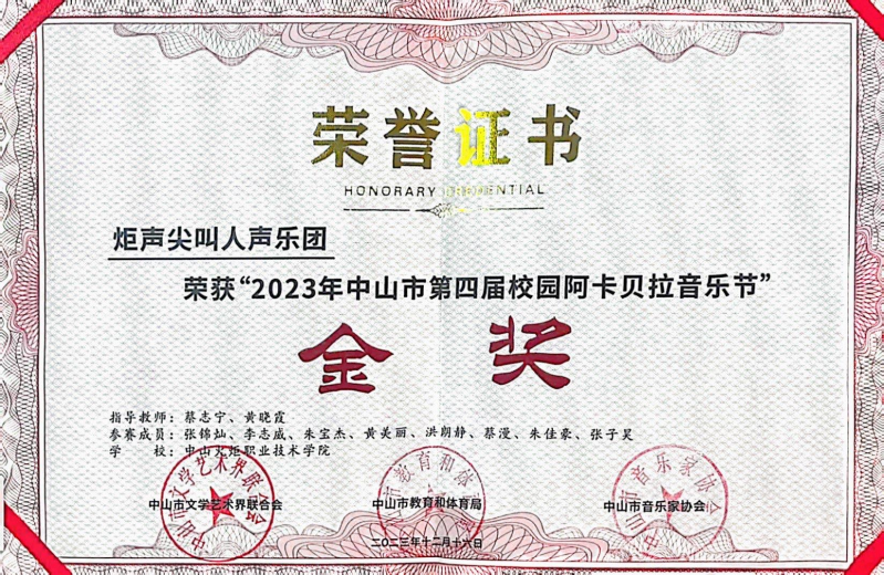 在此基础上,黄晓霞组建了“炬声尖叫人声乐团”青年志愿服务队,自2021年起每年开展“推普助力乡村振兴”志愿服务,并定期到社区开展爱心支教活动,曾连续三年获评团省委“三下乡”重点项目优秀团队和市级优秀志愿服务项目。“例如,我们会在3月份开展‘学雷锋’支教活动,走进社区或幼儿园为孩子们上音乐课。”黄晓霞说,“团队除了为孩子们详细介绍雷锋的事迹及其精神内涵,还教导他们试用阿卡贝拉的形式学习演唱《学习雷锋好榜样》,为他们播下学雷锋的美好种子。”另外,团队成员还多次接受中山市教体局、火炬高新区宣传办(教体文旅局)等单位邀请参加各类演出活动,广受观众好评。
