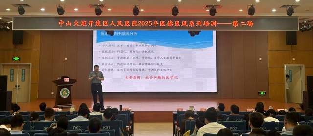邀请中山市第一市区人民检察院副检察长朱洪源开展《医疗系统职务犯罪心理剖析与法律预防》专题廉洁教育培训,从“现象呈现 — 根源剖析 — 系统防治”层层递进,提出法律、制度、心理、文化“四位一体”立体防线,为该院建设良好作风提供了重要参考。