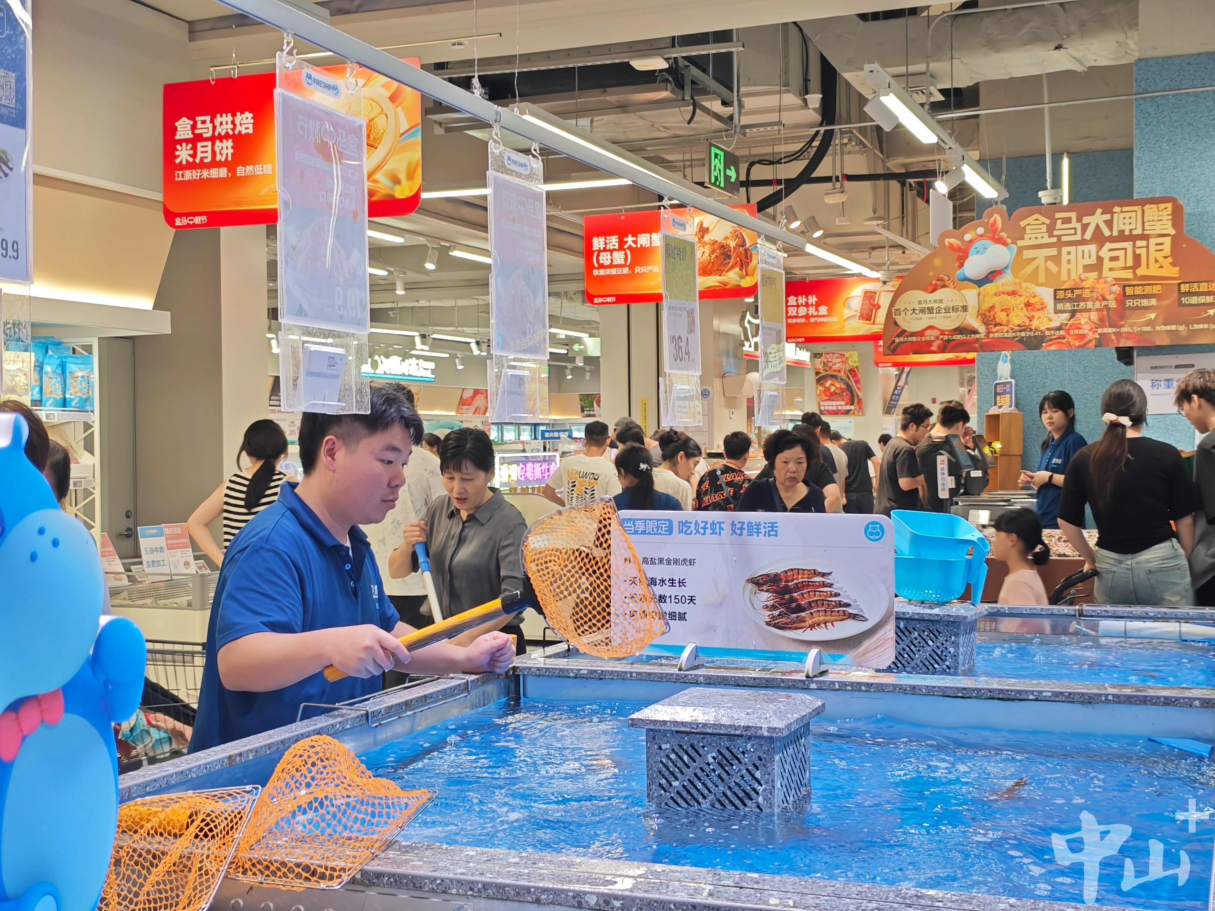 位于石岐万象汇的盒马中山首店自2024年9月26日开业以来热度持续不减,不仅创下“盒马2024年全国新开门店首日销售业绩第一”的纪录,实现开业前三天客流量超10万人次,更在刚刚过去的国庆中秋“双节”期间再次掀起消费热潮,一度出现“盒马堵”现象,前往购物的市民络绎不绝。