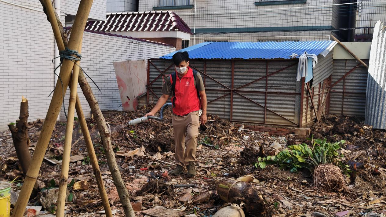 楼道、冷巷间、绿化带、下水道口,每一处可能滋生蚊虫的地方,他都逐一喷洒药剂。面对个别居民对气味的担忧,他总是耐心解释消杀的必要性和安全性,争取理解与配合。同时,他还联合物业、发动志愿者,对网格内的公共区域、楼梯拐角、天台等进行地毯式排查和清理,并挨家挨户劝说居民及时清理常年堆积、影响环境的杂物。“过程中难免遇到不配合甚至抵触的情况,但只要好好沟通,绝大多数群众都能理解配合。”他说。