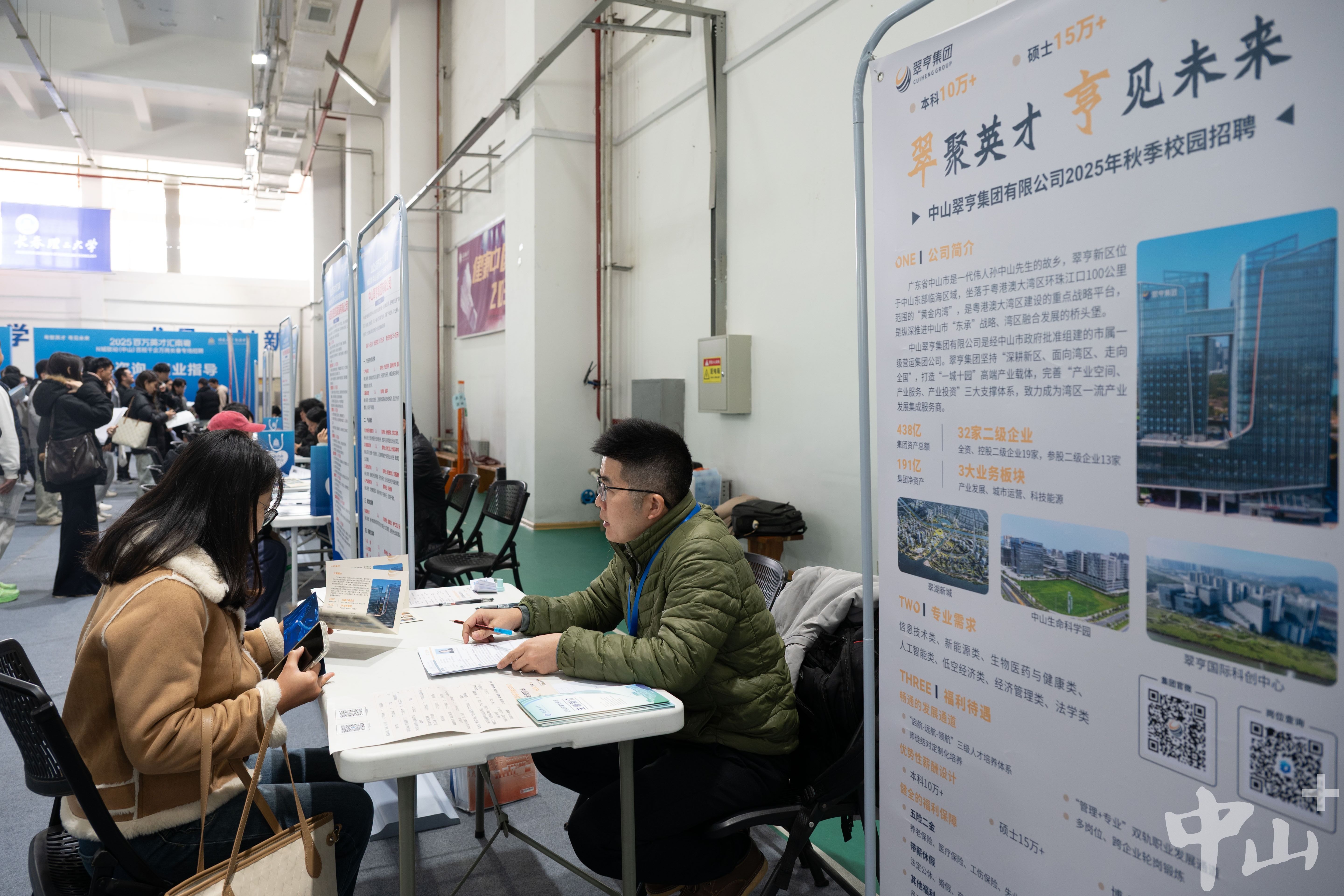 长春工业大学制药化学专业研三学生黄媛,坐着学校组织的大巴专程赶来。“我主攻研发方向,看到招聘目录里有生物医药与健康类岗位,觉得和翠亨集团需求高度契合,就立刻过来了。”她坦言,此前在暑假去过广州、珠海、深圳等城市,对广东印象极好,虽未到过中山,但早有耳闻当地就业环境优越,“学校很少有南方专场招聘,这次企事业单位‘打包’进校,对我们应届生来说是难得的机会。”