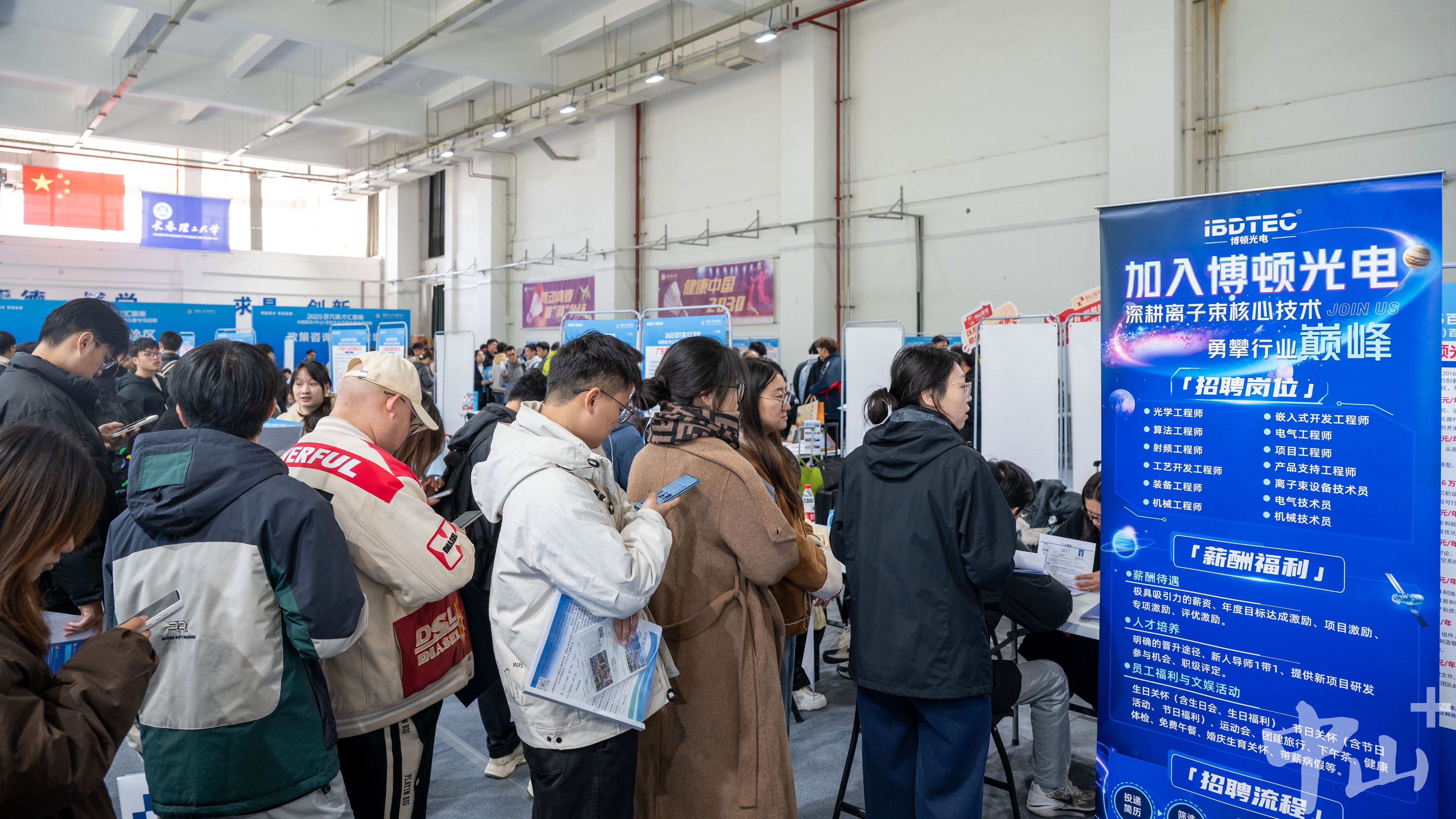 隔壁联合光电的展位同样被咨询学生环绕。“我们带来设计岗、工艺岗、市场开发岗等,光学、通信工程、机械等专业学生都能找到对口方向。”企业HR陈巧锦透露,上午开场不到1小时,就收到近30份简历,求职者以硕士为主,“虽未开展技术面试,但从交流看,学生综合素质普遍较高。”