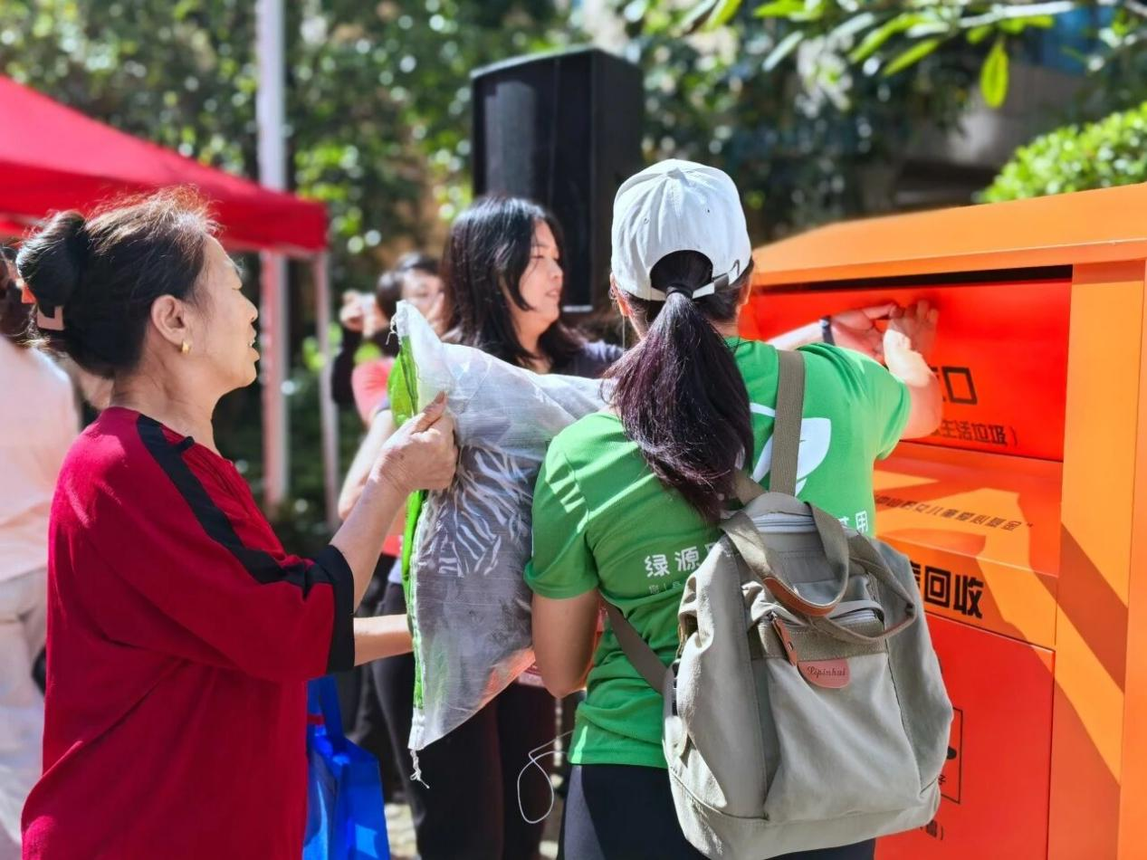 活动现场,绿美妈妈和巾帼志愿者忙碌地引导投放,发放宣传资料和环保布袋,耐心讲解项目内容。很快,回收箱前已排起长队,居民们手中提着大包小包,有序等候投放。这些旧衣物,即将开启资源循环新生。