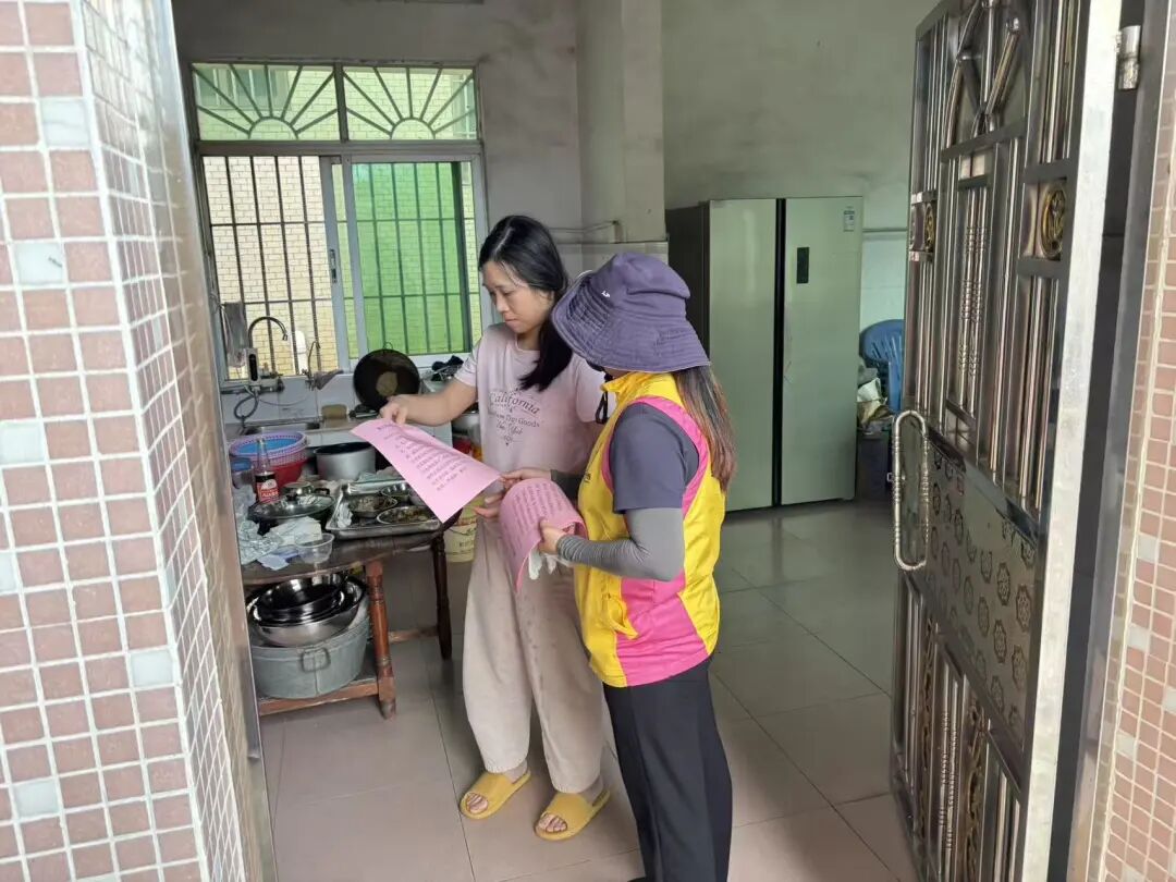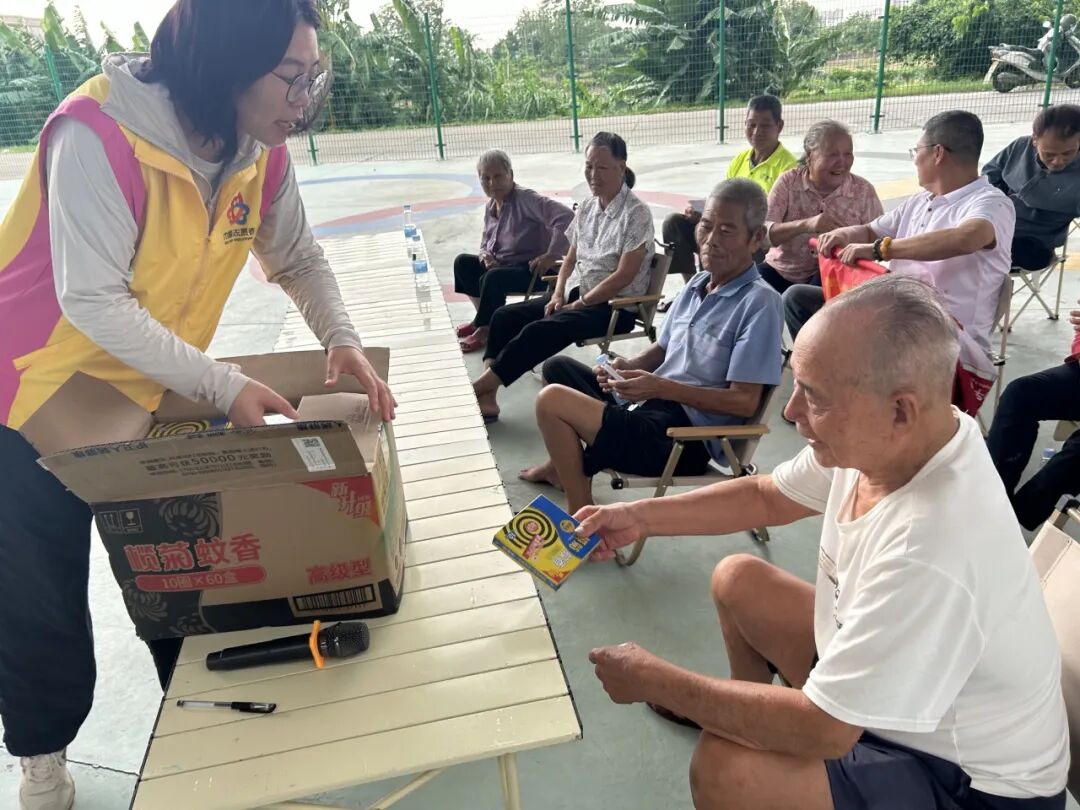 针对老年群体,她们用本土方言耐心解读,手把手示范如何检查家中积水隐患,通过趣味问答、发放防蚊物品,吸引居民主动参与,让科学防蚊理念渗透到每一户家庭。
