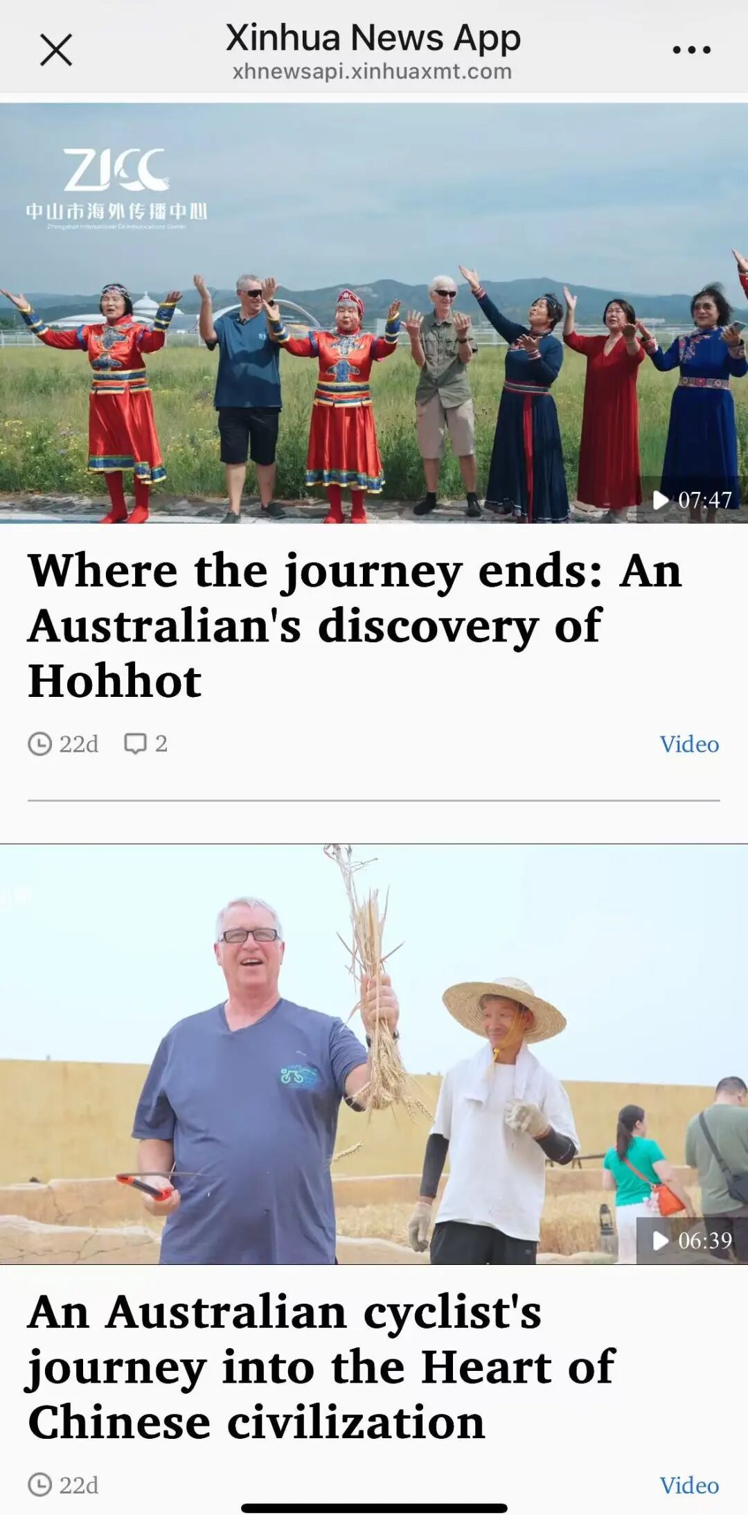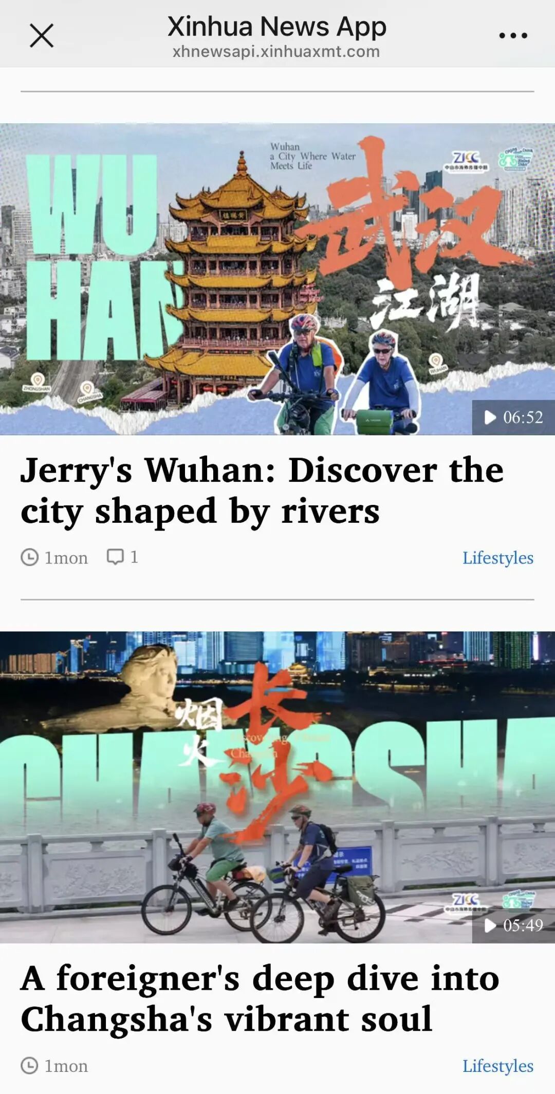 《杰瑞骑行看中国》系列视频获Xinhua News App选用转载。