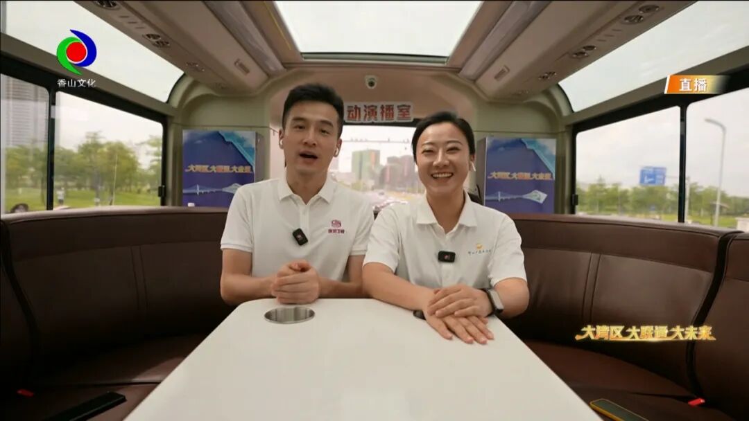 为了做好这场全媒体直播,中山广播电视台从2024年4月筹备阶段开始,就与深圳广电集团深度合作,一起制定直播方案,完善直播各个环节。直播在深圳广电集团设置总演播室,并设置了空中、移动大巴、两路海上航船共四个移动演播室,总演播室以及所有移动演播室环节均由深中两台主持人、出镜记者共同出镜主持。此外,中山广播电视台还派出了5组出镜记者,保障了多路直播信号,在48小时内直播连线近50次,通过镜头将“美丽中山 投资热土”的良好形象和中山积极探索融湾一体化发展的生动实践传播给了全网上亿观众。