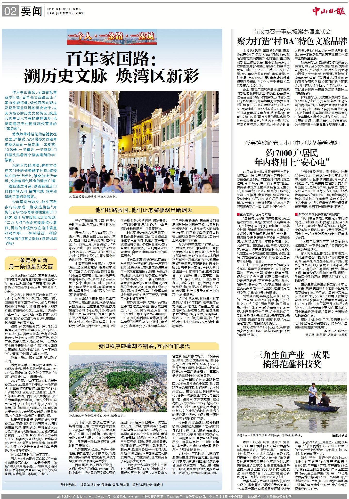 2021年底,中山下定决心改造提升孙文西片区,还海内外中山人一处有传承、有创新的精神家园。经过1000多个日夜的规划、论证以及改造建设工作,今年国庆期间,“百年孙文西焕新归来”成为粤港澳大湾区的一大文旅标签。这里“复活”了旧时的茶楼,搬来了往日的邮筒,同时也进驻了咖啡、文创、潮玩等大量新业态,老街区和新活力温柔相拥,文化体验与消费活力同频共振。
