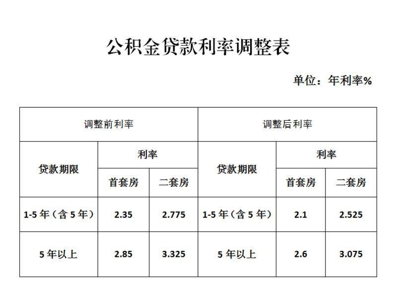 根据《中国人民银行关于下调个人住房公积金贷款利率的通知》,自2025年5月8日起,下调个人住房公积金贷款利率0.25个百分点,5年以下(含5年)和5年以上首套个人住房公积金贷款利率分别调整为2.1%和2.6%,5年以下(含5年)和5年以上第二套个人住房公积金贷款利率分别调整为不低于2.525%和3.075%。