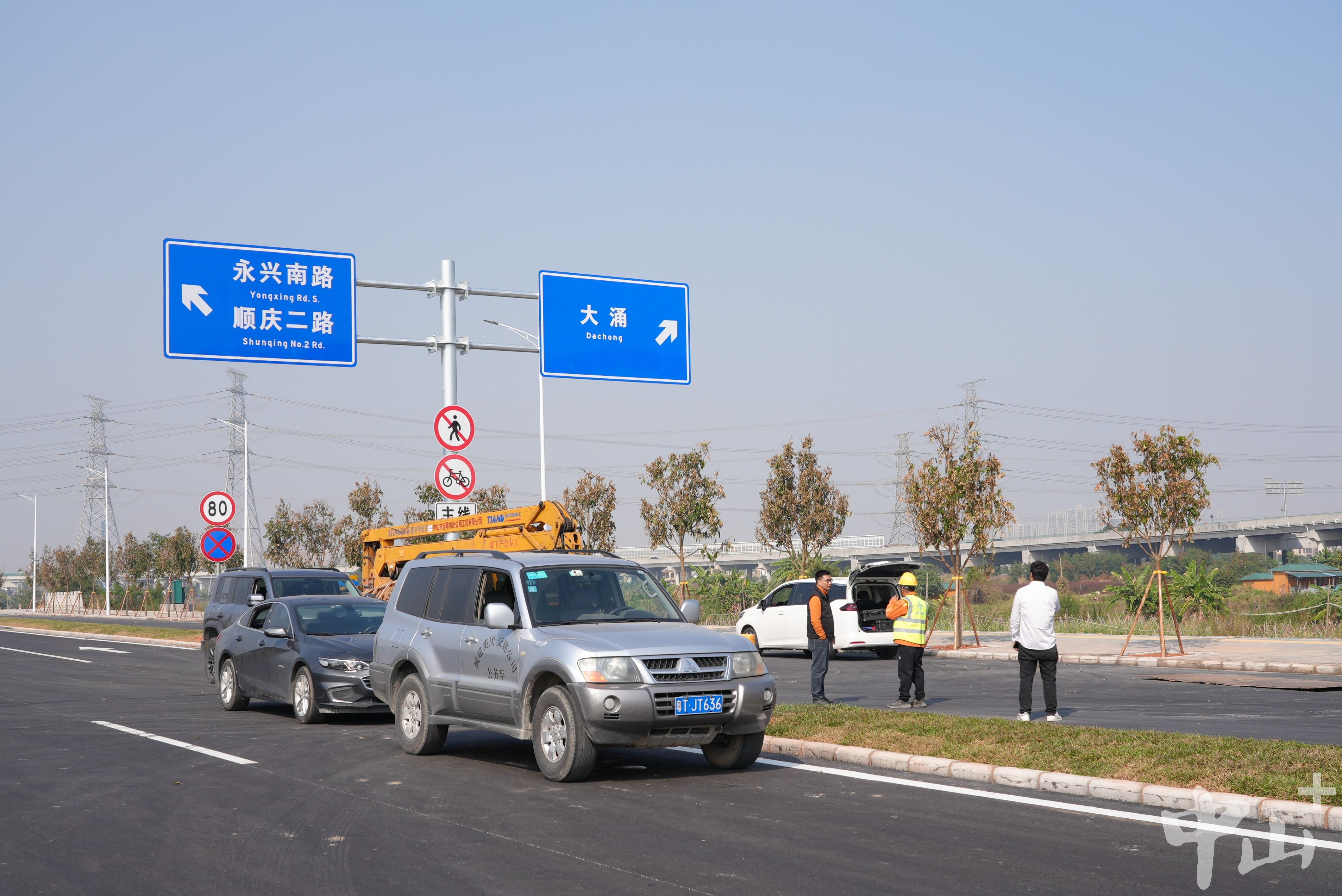 南外环延长线工程为中山市二环快速路西南段的重要组成部分,是连接中山主城区与西部镇区的主要干线之一,项目总长11.339公里。其中,长约4公里的横栏段于2020年12月正式开通。此次完工通车的沙溪、大涌段主线长度共7.3公里,按一级公路标准建设,主线双向6车道,设计时速80公里。通车后,从城区前往沙溪、横栏等镇区的车程将从原来的30—40分钟缩短至20分钟以内,彻底告别绕行拥堵历史。值得注意的是,在试通车阶段,南外环延长线主线限速60km/h。