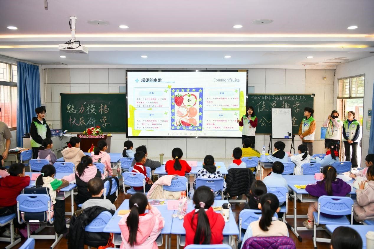 近日,中山职业技术学院青“村”足迹突击队走进黄圃镇横档村和石军村,为近200名小学生开启以“岭南佳果”和“醒狮非遗”为主题的乡村研学公益课堂。