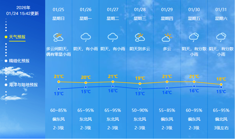 1月24日16时35分,因冷空气减弱,中山市气象台解除全市寒冷预警信号。预计未来几天我市日平均气温上升至12℃以上,不过,新一轮冷空气将于28日至29日到来,届时我市气温或略有下降。目前我市森林火险红色预警信号正在生效,请市民注意用火用电安全,及时增添衣物。