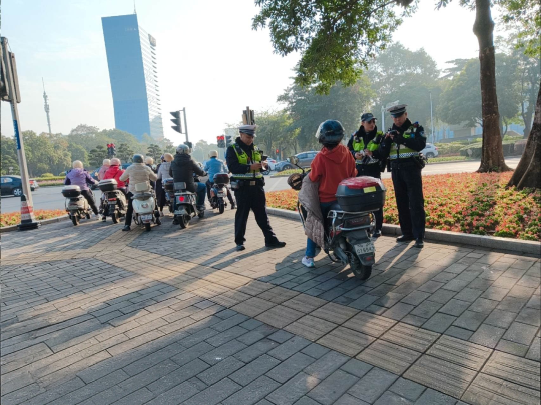 交警东区中队结合辖区交通实际特点,构建“固定+流动”整治劝导模式。一方面,在兴中道博爱路路口、兴中道中山路路口设置两个固定劝导点,强化重点路段常态化管控;另一方面,根据辖区特点设置流动劝导点,在主要交通路口开展不定期滚动式执法,对驾驶电动自行车摩托车逆行、闯禁行、闯红灯、无牌无证、违法载人、不戴头盔、不按规定车道行驶等七类重点违法行为进行严格执法,精准管控,全力规范通行秩序。