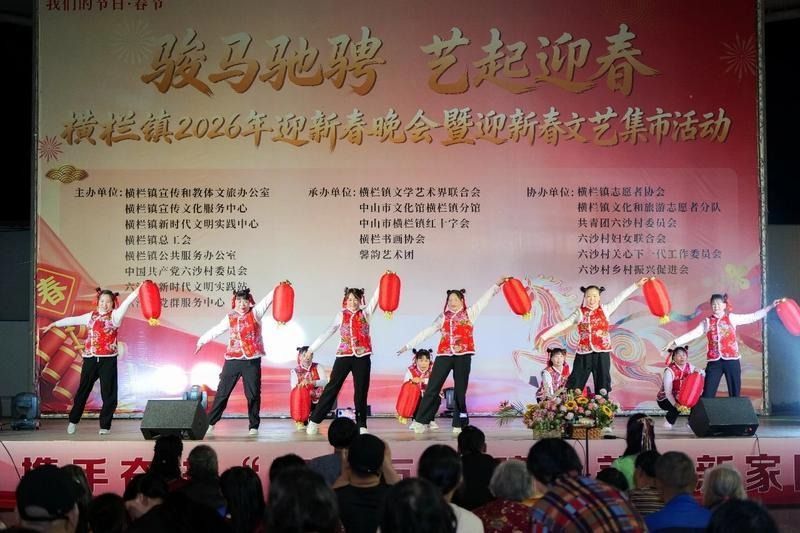 2月13日晚,“骏马驰骋 艺起迎春”横栏镇2026年迎新春晚会暨迎新春文艺集市活动在六沙村举行。活动以民俗集市聚年味、以慈善互动传爱心、以政策宣讲惠民生、以文艺展演颂华章,共庆马年新春佳节。