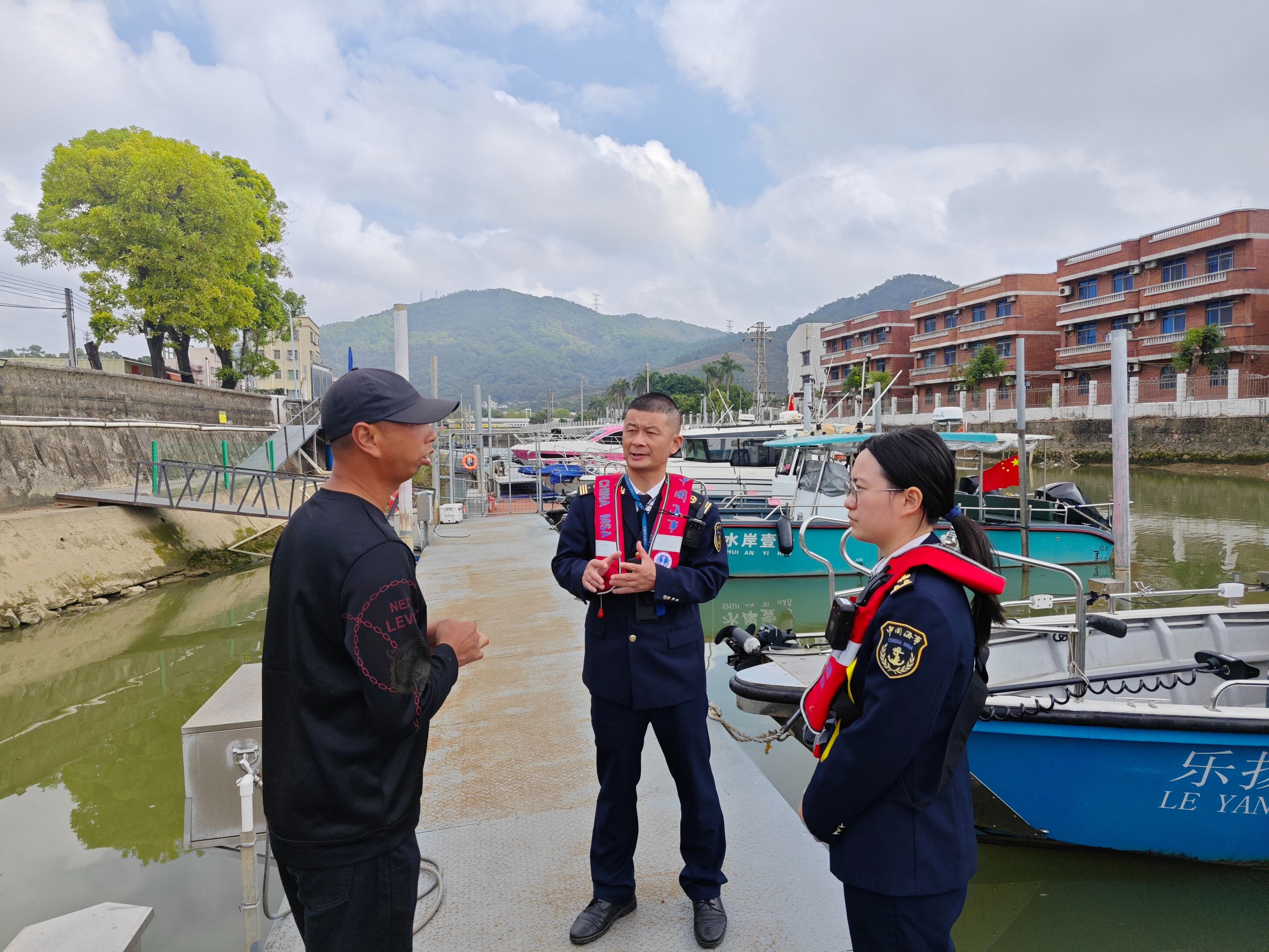 工作人员正在开展游艇出海安全提醒。通讯员供图