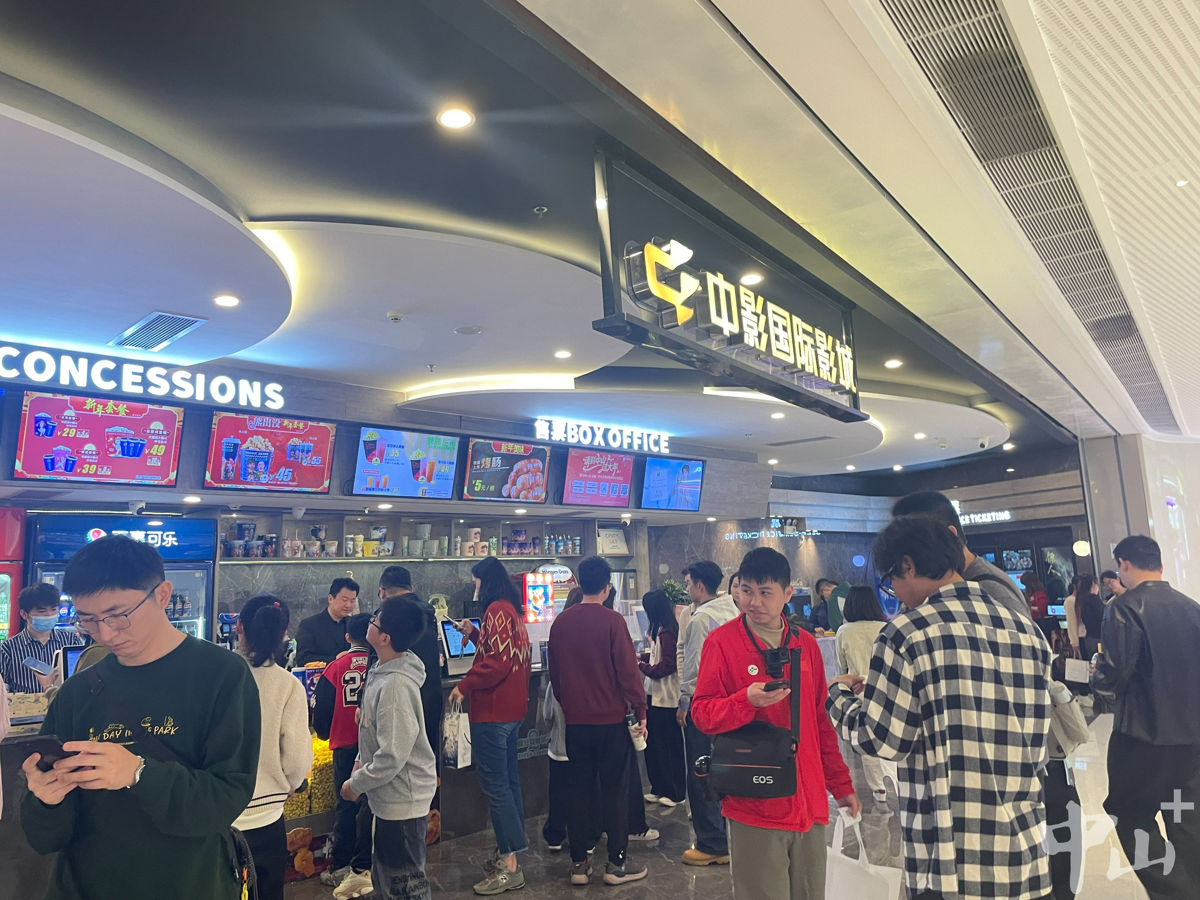 2月20日下午,中影国际影城(中山万象汇店)内人头攒动,取票机前、候场区随处可见前来观影的市民,热闹的氛围尽显春节档的火热。检票口处,不少市民手持电影票有序入场,孩子们拿着爆米花和饮料,脸上满是期待;刚看完电影的观众则三三两两地交流着剧情,影院内处处洋溢着轻松愉悦的氛围。