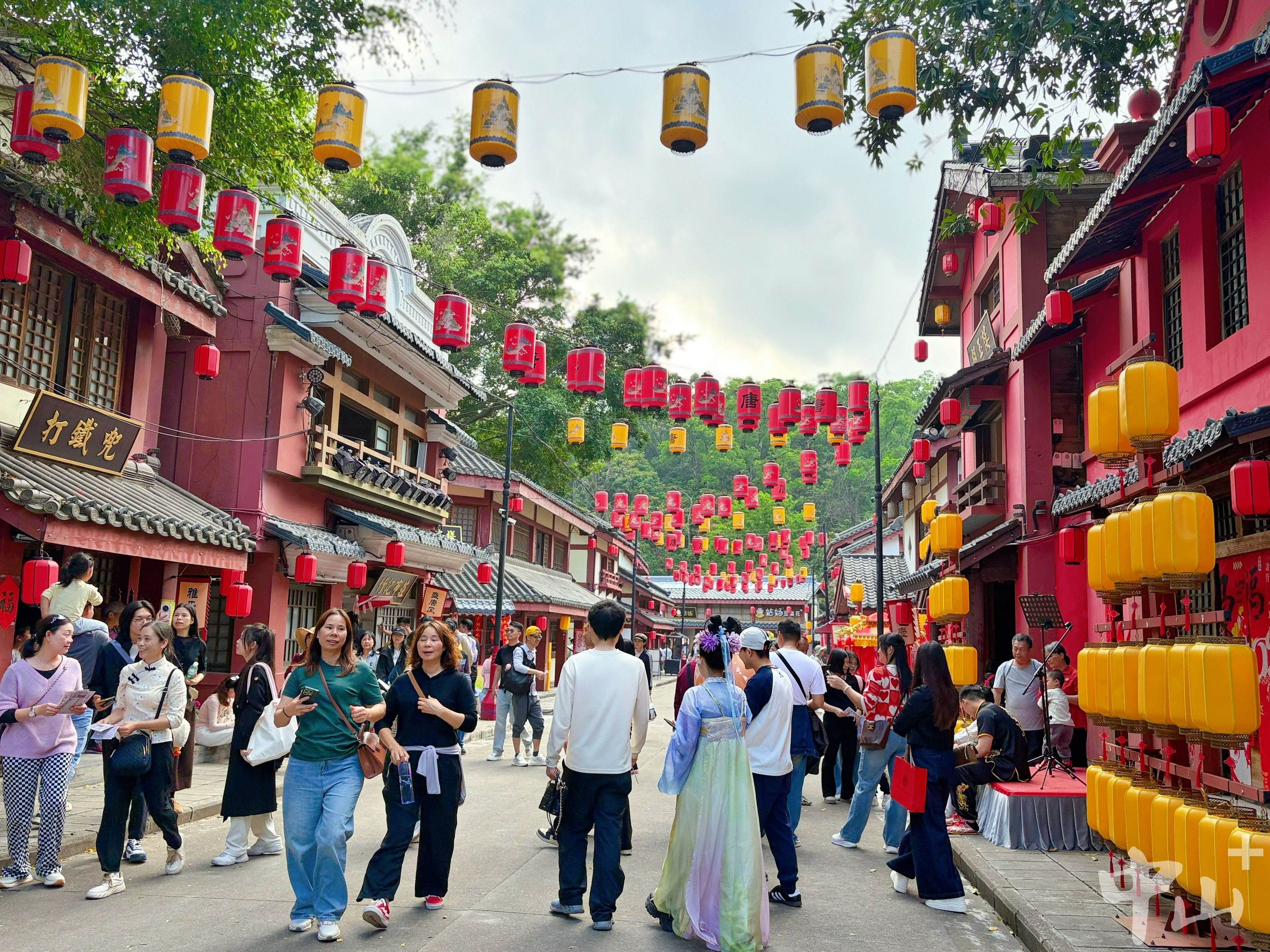 中山影视城长安镇景区游人如织,热闹非凡。 记者 阮晨雪 摄