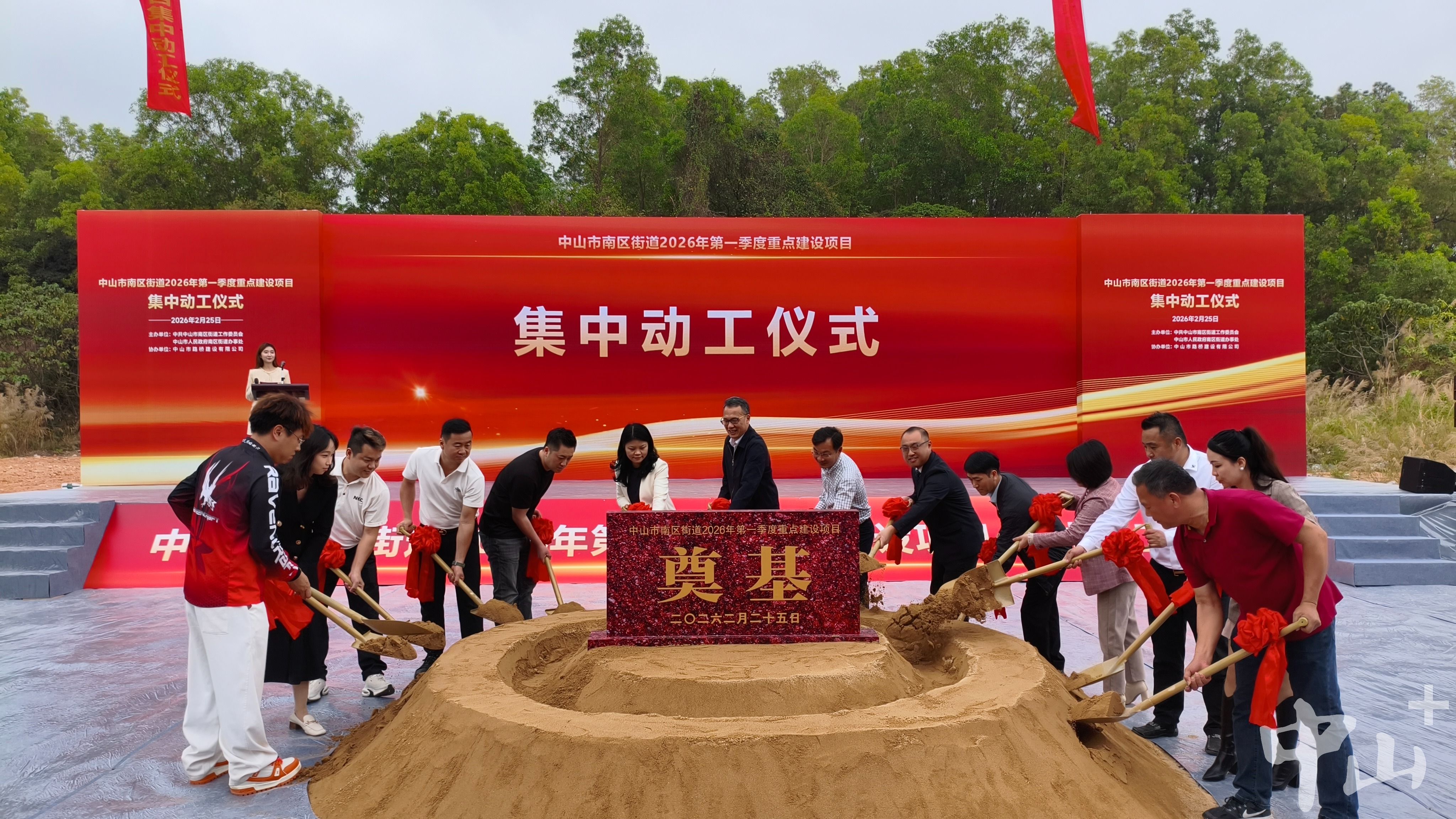 2月25日,中山市南区街道2026年第一季度重点建设项目集中动工仪式在渡头共兴路侧举行,12个重点项目集中动工,总投资达6.4亿元。