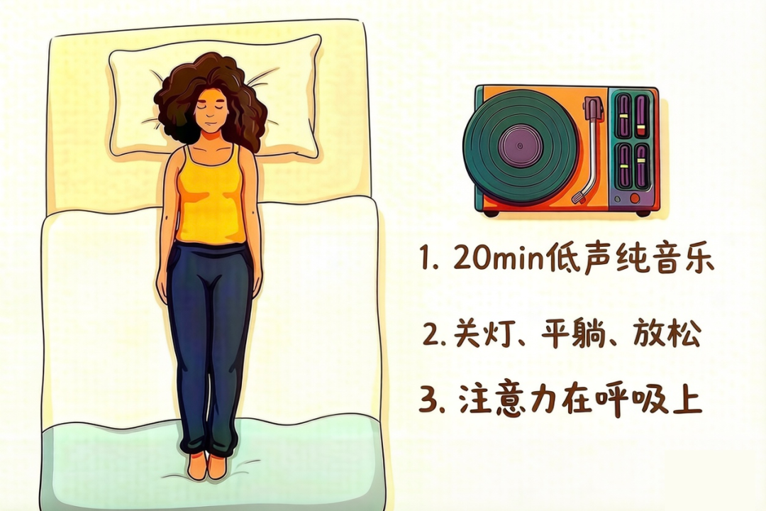 Steep 2关上灯,平躺,闭上眼,让身心放松。
