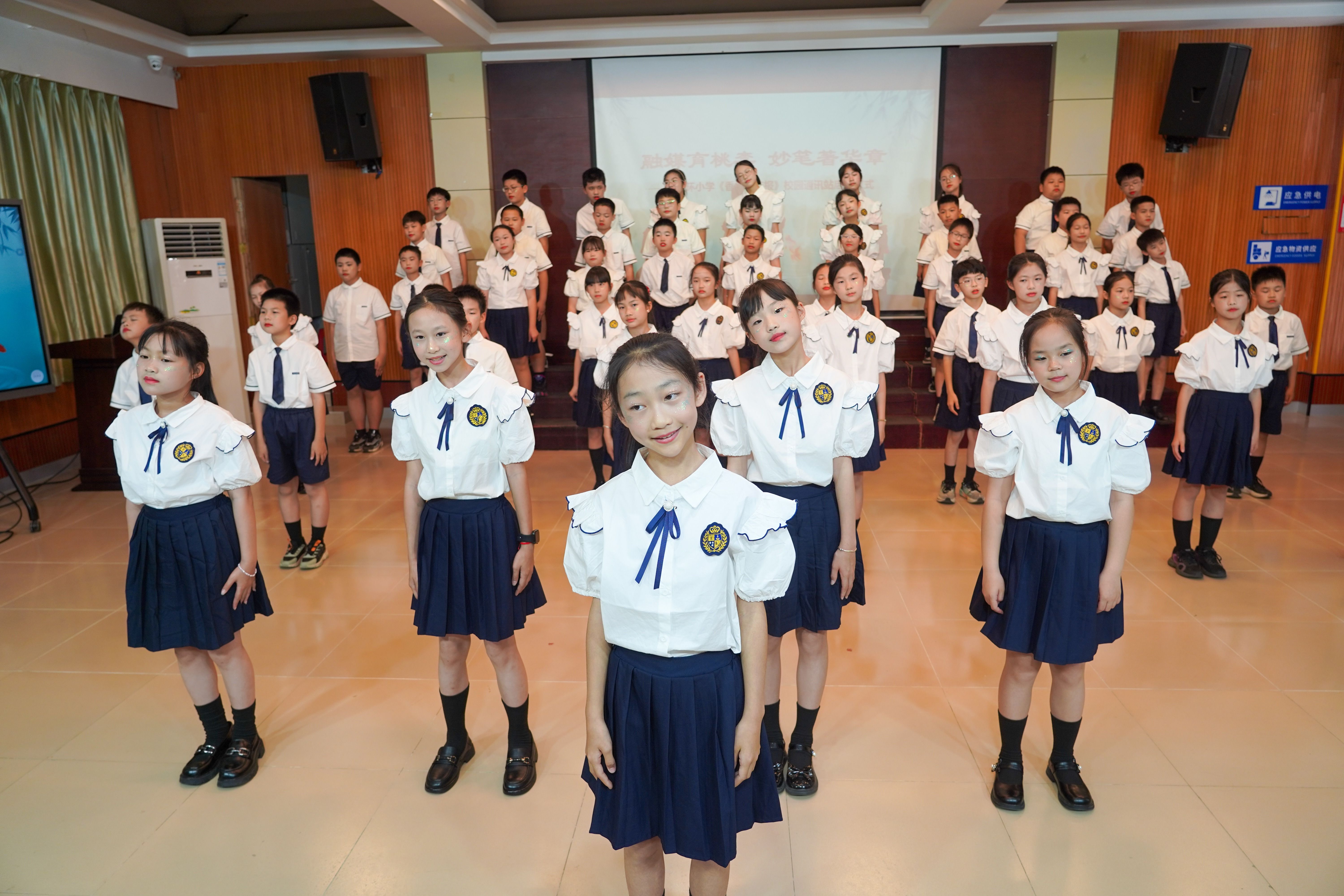 “小小的梦想,有大大的力量,坚定信仰有担当,守护你身旁……”活动在五(3)班筑梦书苑带来的合唱《小小的梦想》中拉开帷幕。同学们身着整洁的校园礼服,歌声清澈悠扬,搭配整齐划一的手势舞,既饱含对未来的美好憧憬,也流露着对成长的渴望,赢得现场阵阵掌声。