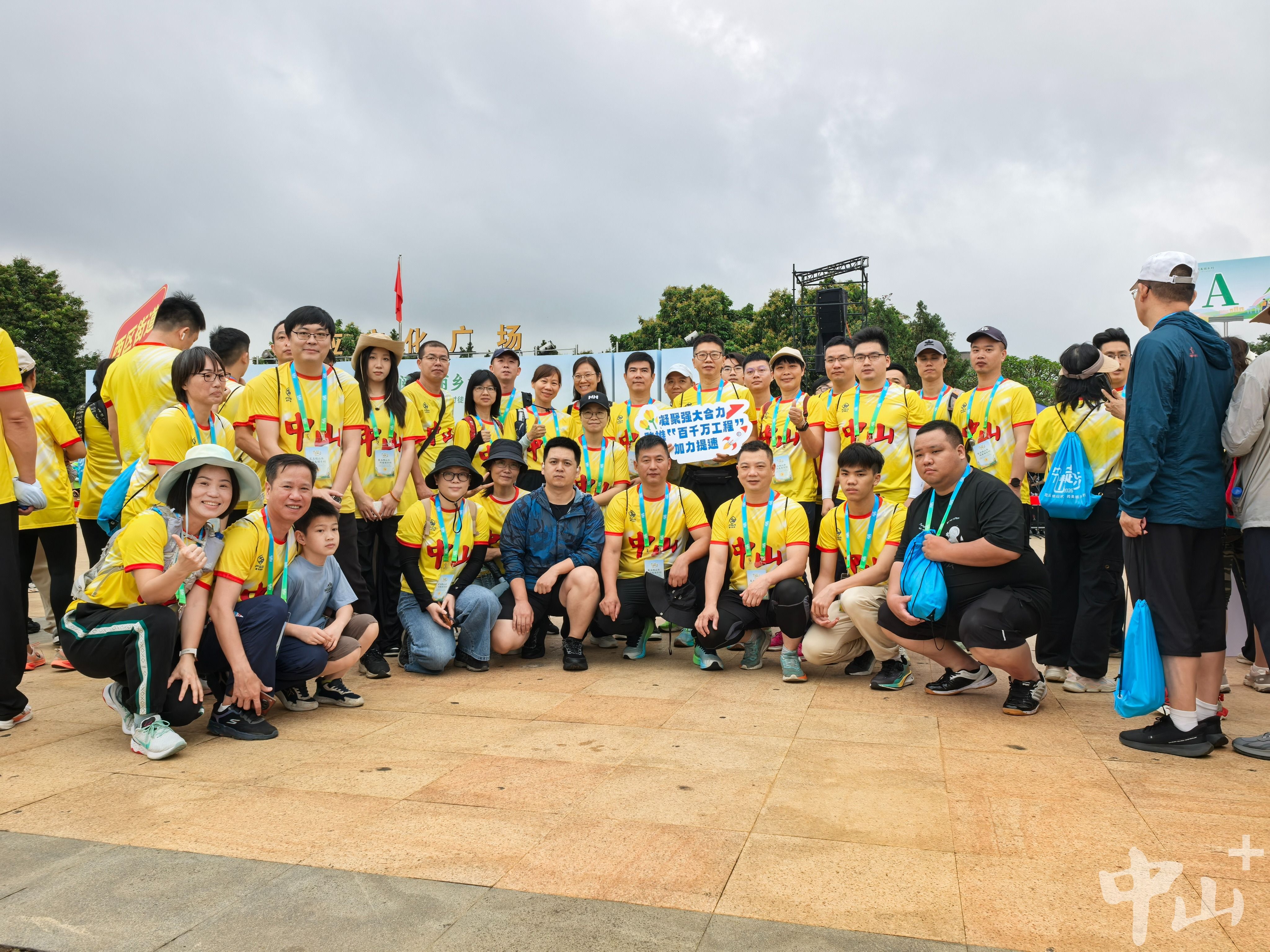 3月28日,2026年中山市“百千万工程”环五桂山30公里万人乡村徒步活动现场。作为两届全国村BA冠军诞生地,沙溪镇由镇党委副书记李海龙带队,组建38人徒步方队活力亮相。方队成员身着亮眼的粤BA黄色拉拉队服装,鲜亮的色彩在徒步队伍中格外醒目,成为一道极具辨识度的风景线。方队成员一路步履铿锵、精神抖擞,既沉浸式感受中山乡村振兴的喜人成果,也为当晚开赛的粤BA赛事呐喊助威。