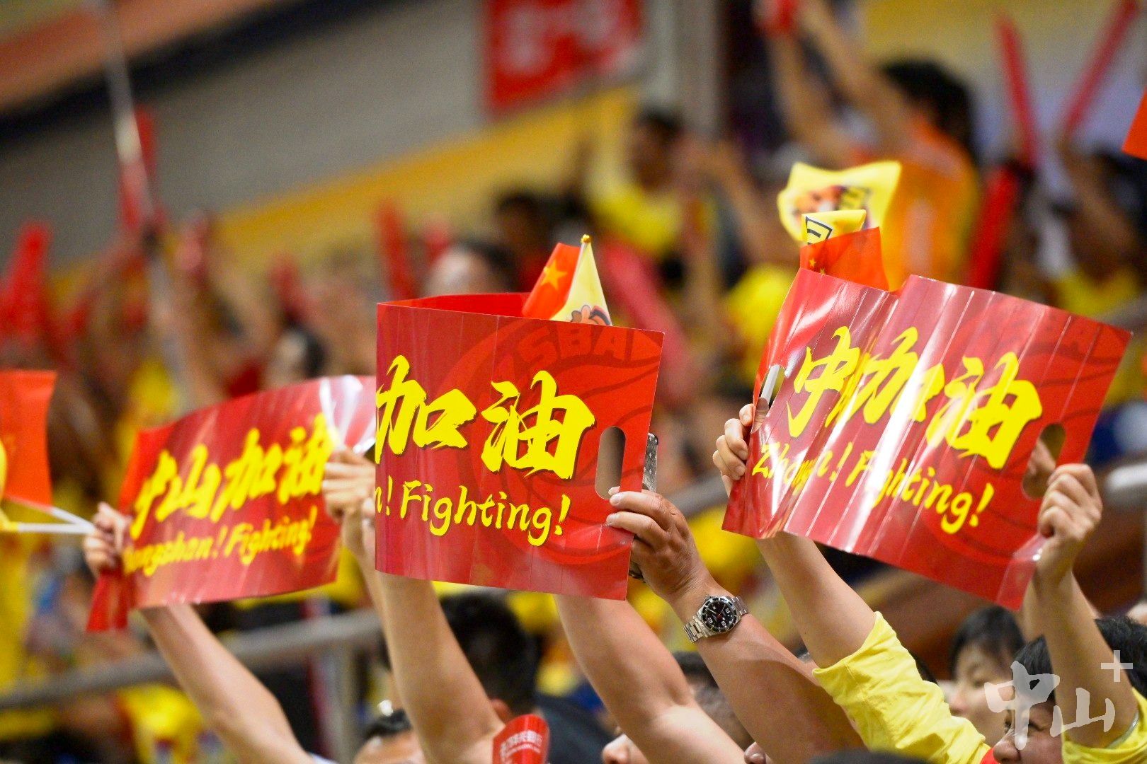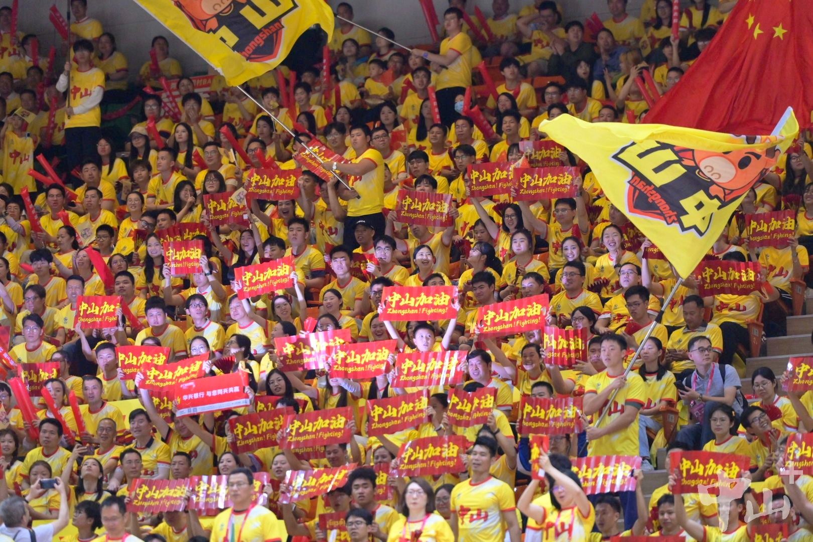 中山拉拉队为中山队助威,口号标语激动人心。