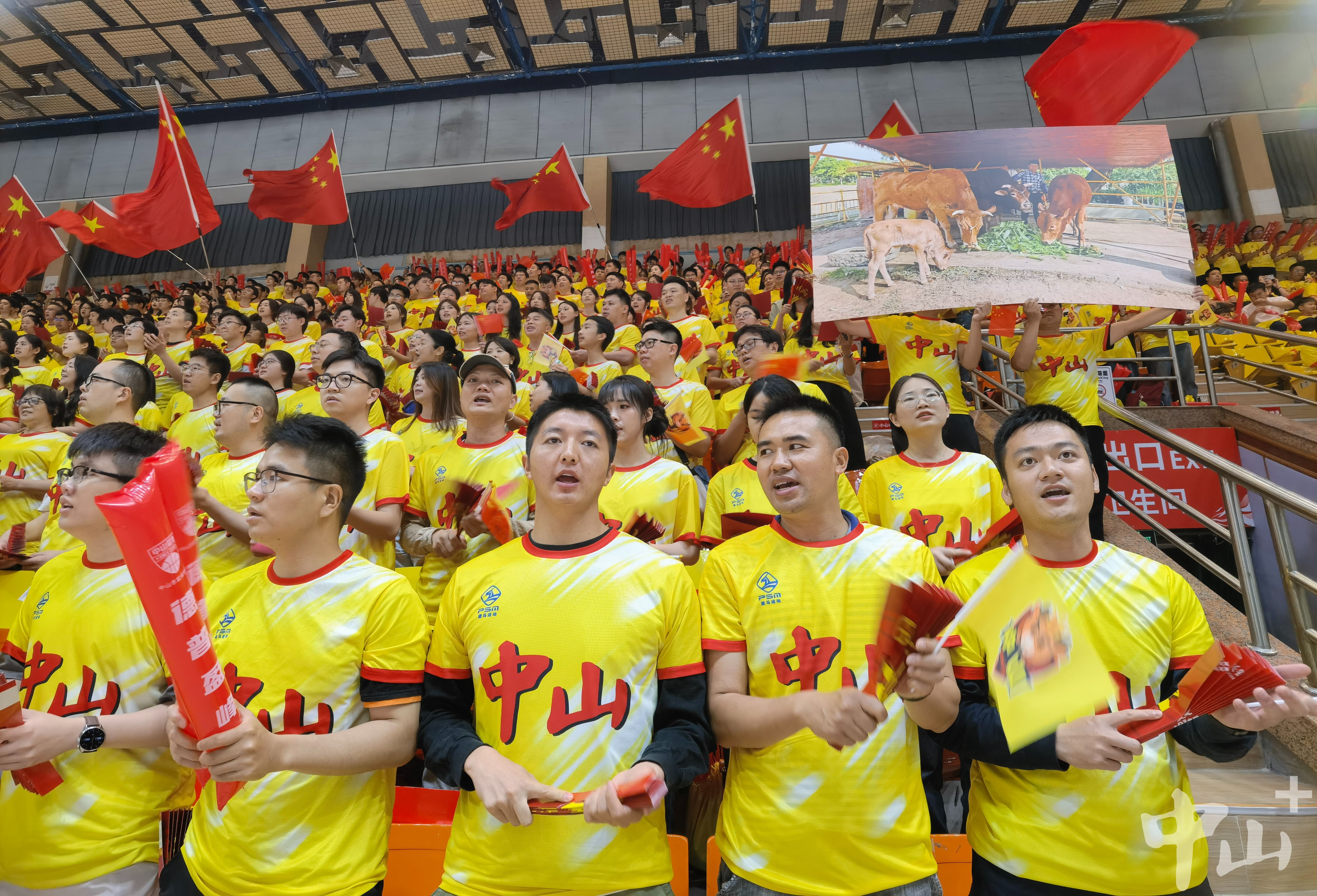 “冠军牛”也来为中山队加油。