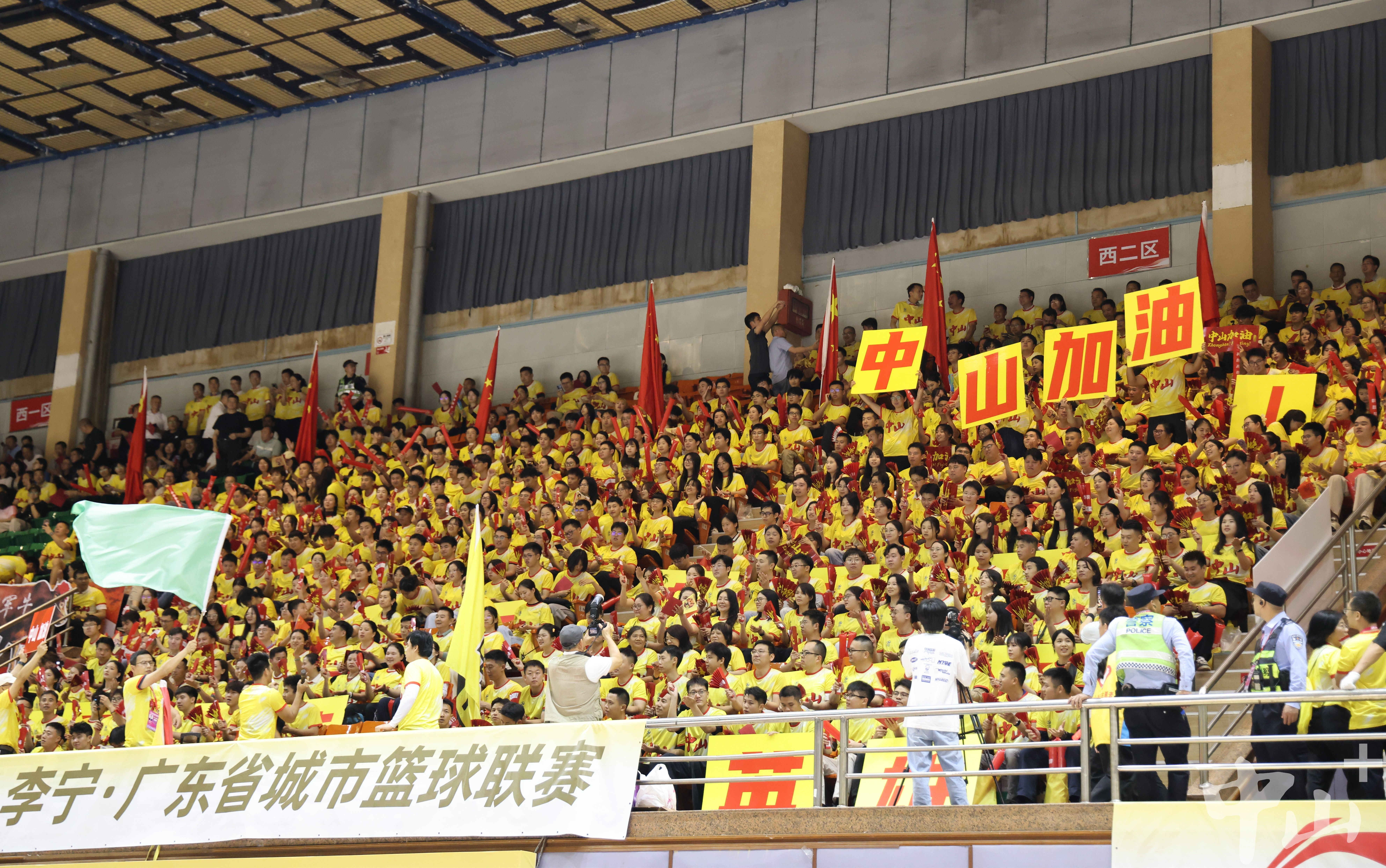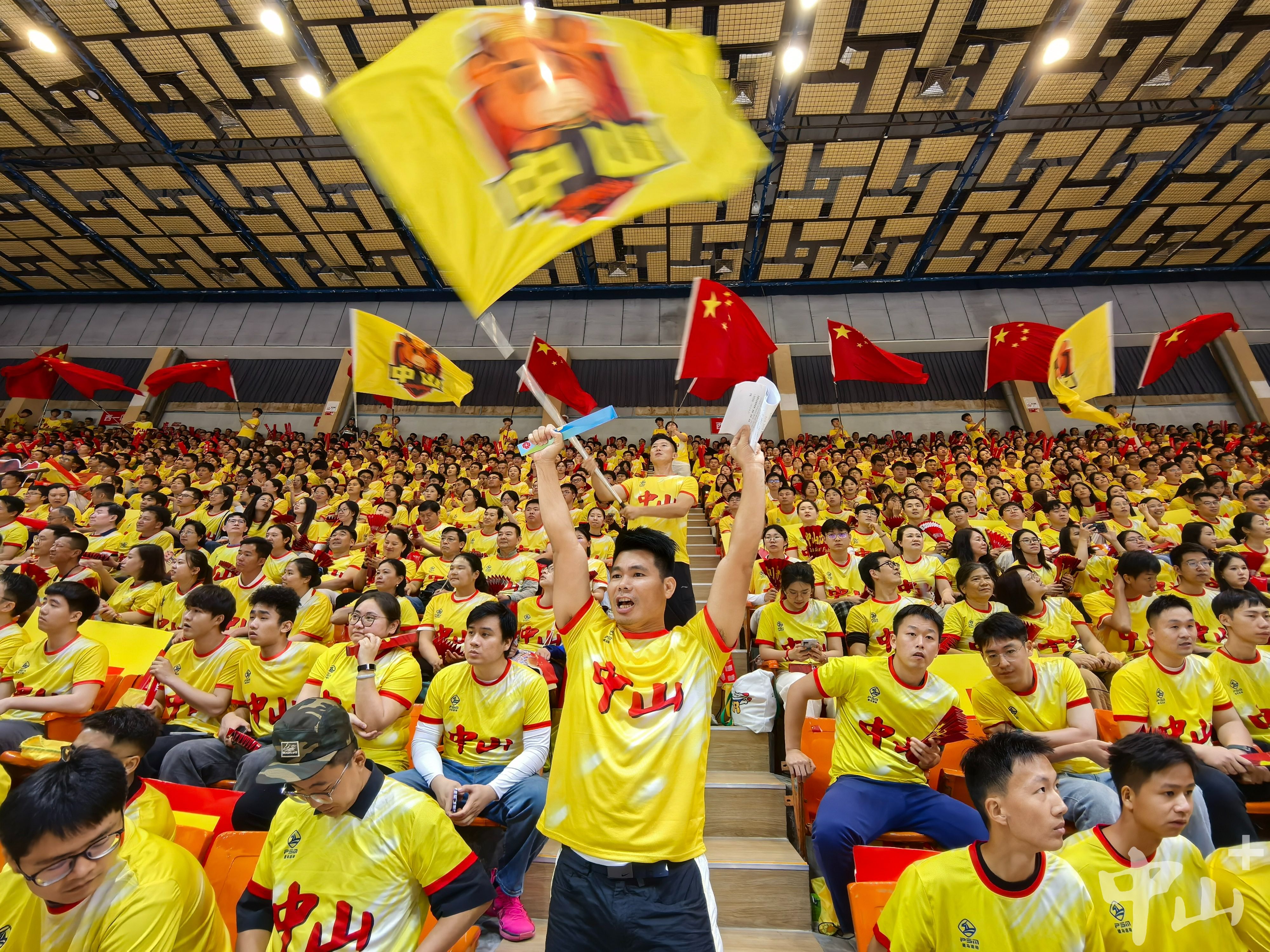 中山拉拉队火力拉满,为中山队呐喊助威。