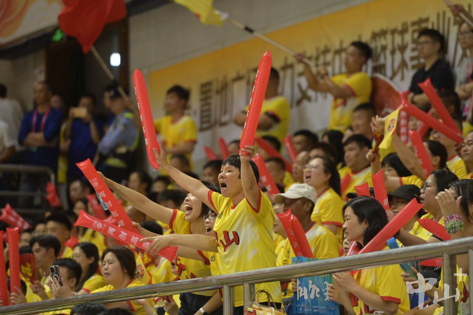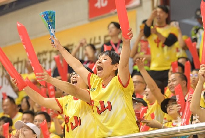 当晚,中山市体育馆座无虚席,身着黄色助威服、坐在前排的雪姨在看台上格外醒目。从比赛开始,她就始终保持着高涨的状态,高举加油牌带领助威团齐声喊出“进攻”口号,时而为球队得分振臂欢呼,时而用极具感染力的呐喊“防守”。