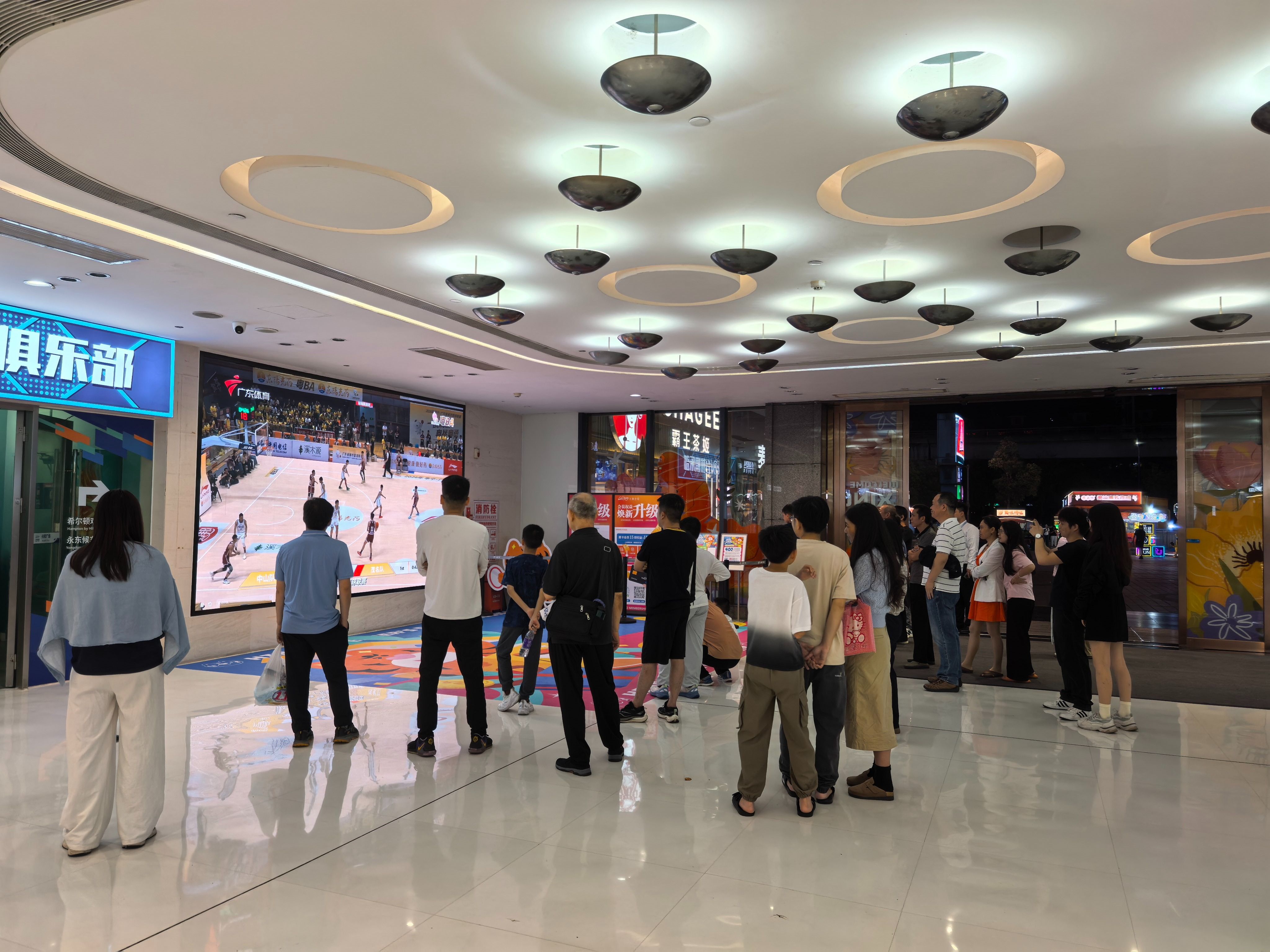 3月28日晚,2026年广东省城市篮球联赛(粤BA)常规赛第二轮赛事打响,中山队首次坐镇主场对战茂名队。翠亨新区(南朗街道)兴和广场內,商场大屏前人头攒动,每当中山队进攻、进球,市民游客都齐声呐喊,为他们加油鼓劲。