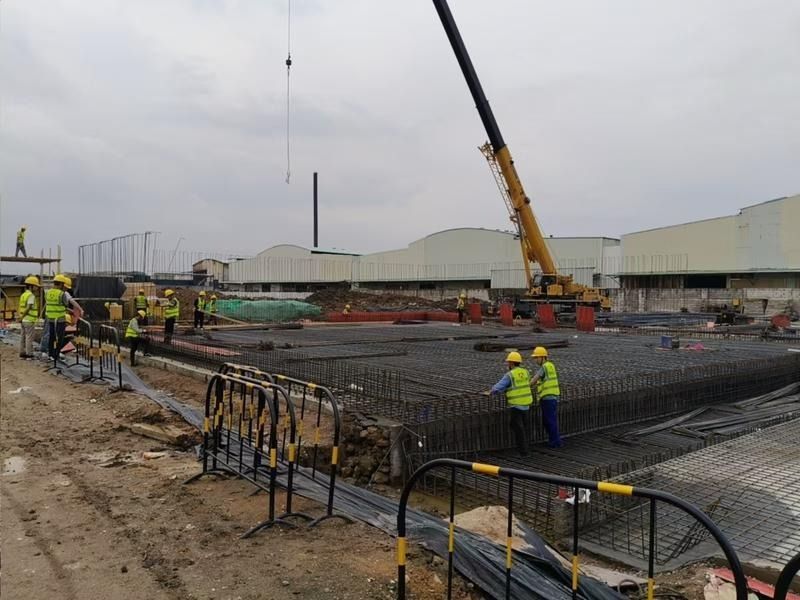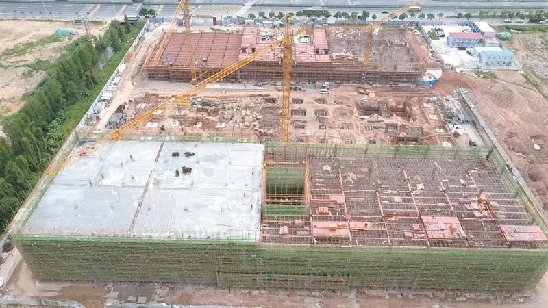 与治水工程建设同步提速的,是大涌镇最大的工业技改投资项目——广东睿来华控智造园区技改项目(以下简称“睿来华控”)。该项目总投资3.3亿元,建设南方地区总部及生产基地,涵盖4栋工业厂房、1栋综合楼、1栋公寓,目前桩基、各楼栋楼板施工已接近尾声。
