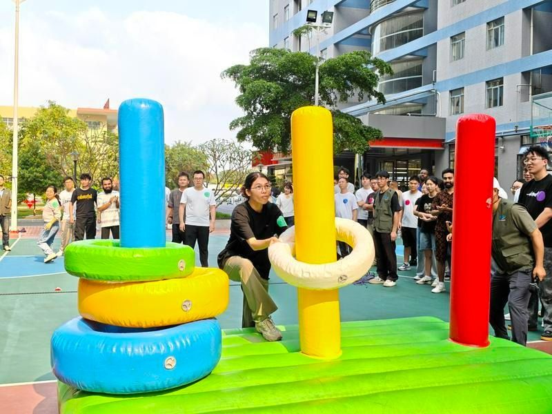 印着“跃升新高度”的签到墙前,人才们依次贴上彩色手印;巨型排球、旱地冰壶赛场边,原本陌生的青年人才自发组队、共商战术,欢呼与交流声取代了楼宇间往日的沉默……4月12日,周日,火炬建发·漫柏未来人才社区(以下简称“未来人才社区”)篮球场上,一场以人才为主角的趣味运动会火热举行。60名来自不同企业、不同领域的火炬高新区人才,在趣味项目中并肩协作,从陌生拘谨到默契十足,不过一场赛事的工夫。