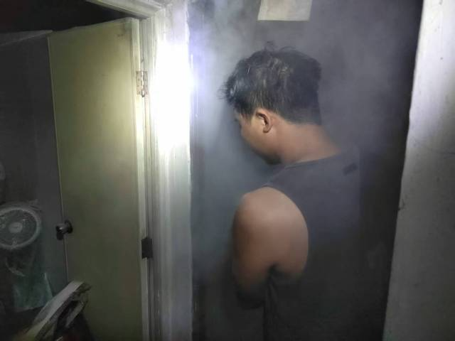 屋内能见度极低,有毒气体令人剧烈咳嗽。吴金荣凭借在部队积累的应急经验,压低身体、贴近地面,迅速锁定火源——房间内老化电器及插排短路起火,周边杂物已被引燃。