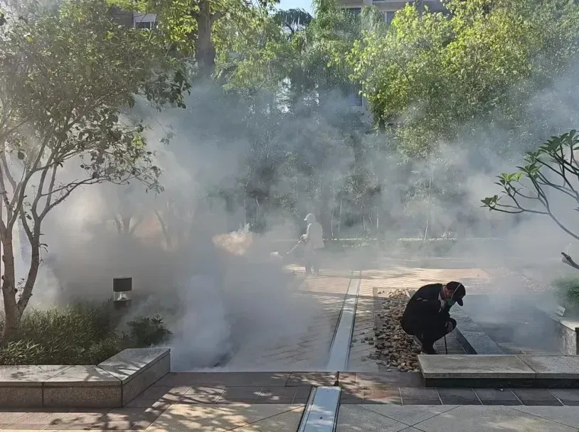 东区街道采取“清消结合”策略,在网格内同步推进积水清理和全域消杀。各党员突击队重点对房前屋后、车库、绿化带等区域的积水容器进行彻底清理,从源头遏制蚊虫繁殖。专业消杀队伍紧随其后,对公共区域、下水道、绿化带等成蚊聚集区实施全覆盖药物喷洒,共使用消杀药物600公斤,消杀面积近95万平方米,有效切断了蚊媒传播路径。同时,党群志愿者入户宣传,指导居民清除家中积水,正确使用防蚊用品,筑牢“家庭防线”。