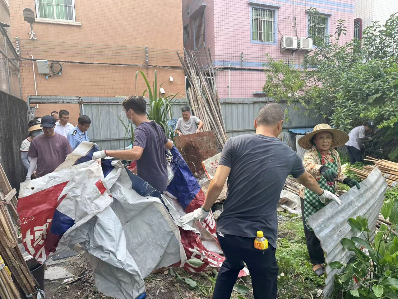 各社区联动“入镇下村”结对单位、驻点团队、机关下沉部门,广泛动员党员、志愿者、居民共同参与环境整治行动。近千名工作人员和志愿者走进老旧小区、背街小巷、闲置地块等重点区域,全面清理卫生死角。志愿者合力清理绿化带、排水沟中的枯枝落叶、废旧杂物,对脏乱的卫生死角进行全面清理。在大家的共同努力下,共清理蚊媒孳生地和卫生黑点200余处,清运垃圾40余吨。