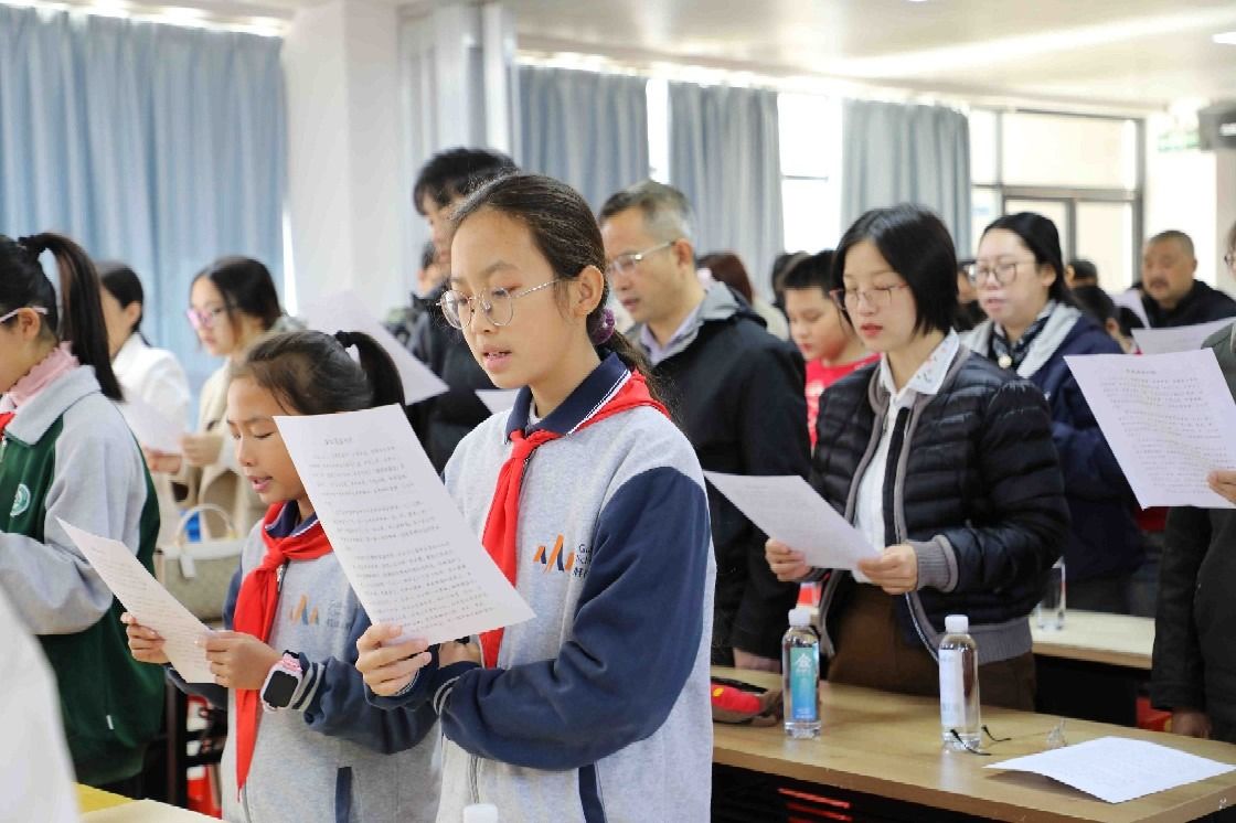 上午9时许,“五桂苍苍,山水悠悠,乡愁缕缕,岁月流芳……”伴随着孩子们清脆悦耳的诵读声,活动正式拉开帷幕。活动以“友善”为核心,分读书分享与颁奖表彰两大环节。“友善的力量”读书分享会上,征文比赛一等奖获得者依次登台分享,鲜活的故事、质朴的表达,诠释“友善让生活充满阳光”的主题内涵,引得台下掌声阵阵。