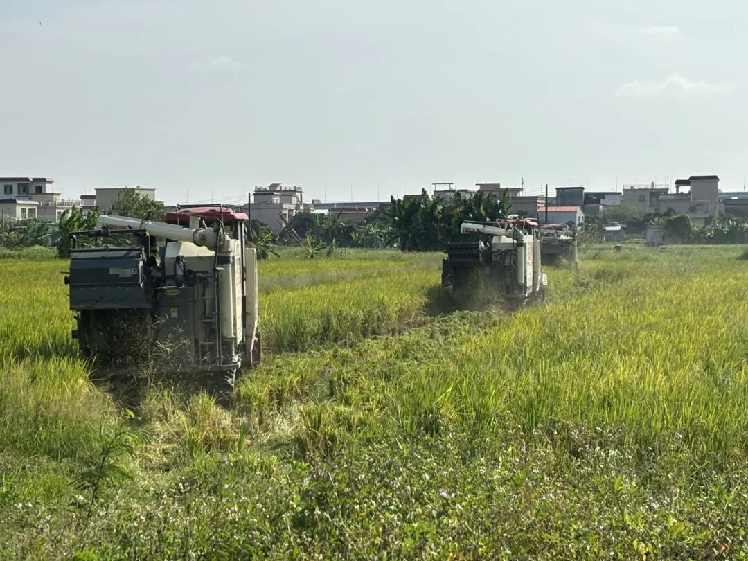 金秋送爽,稻谷飘香。当前,东凤镇稻田相继成熟,遍地金黄,沉甸甸的稻穗压弯了稻秆,收割机在田间轰鸣穿梭,一派繁忙的丰收景象。