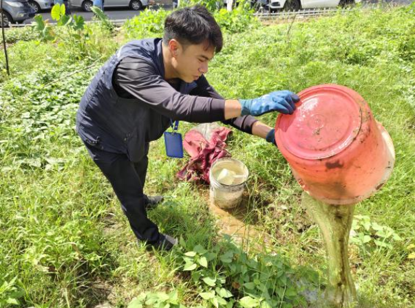 同时,工作人员深入居民区、商户、厂区及公园绿地等,仔细排查各类水体容器,协助群众清除闲置盆罐、废旧轮胎内的积水,对无法清除的积水投放灭蚊幼剂,从源头上控制蚊虫密度。假期期间,全镇共清理各类积水容器6569处。