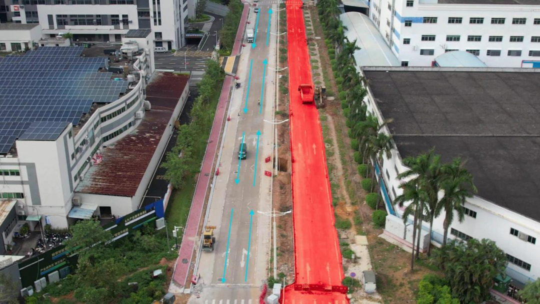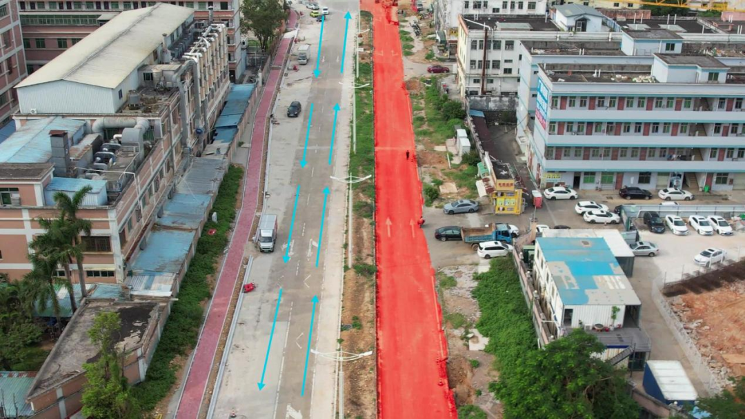 ▲前进三路至前进四路区间围蔽范围及车辆通行导向