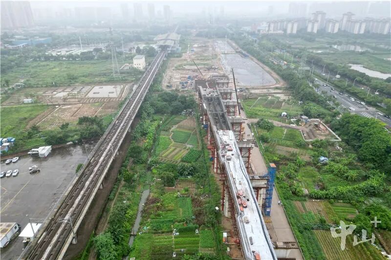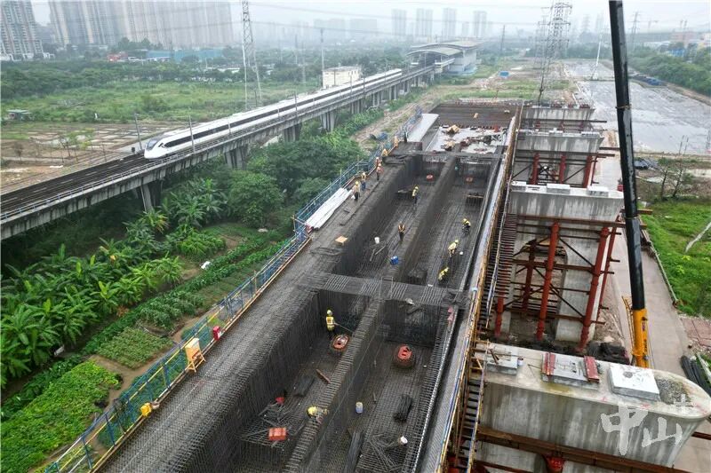 “受中山北站内110kv光迪线高压线的影响,站场部分桥梁下部结构施工未能开展。目前,高压线迁改工程已启动,正在进行线路迁改工作,预计9月能完工。”邹跃辰表示,待中山北站高压线迁改完成后,中山北站桥段将加速推进桥梁下部结构施工,预计明年5月底完工。