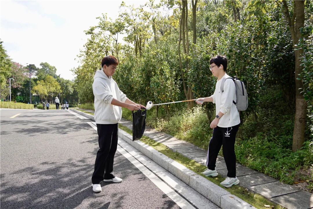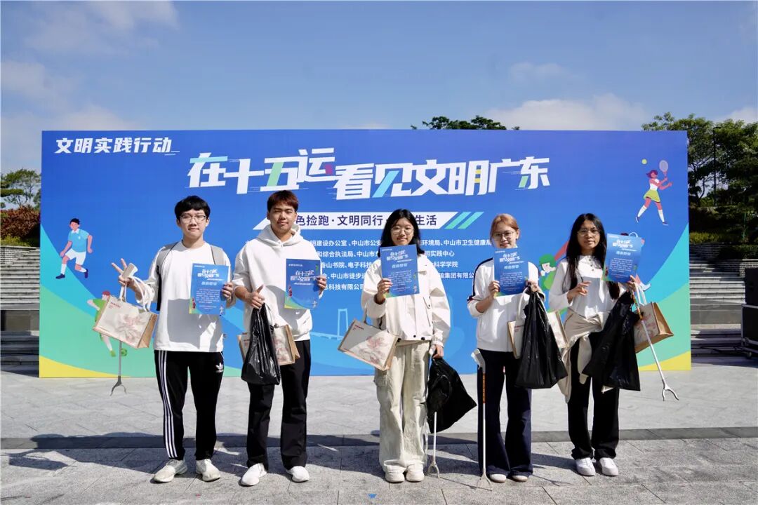 电子科技大学中山学院人文社会科学学院的学子们组成的“绿色捡跑队”,手持环保工具,边跑边清理垃圾,以实际行动践行环保理念;