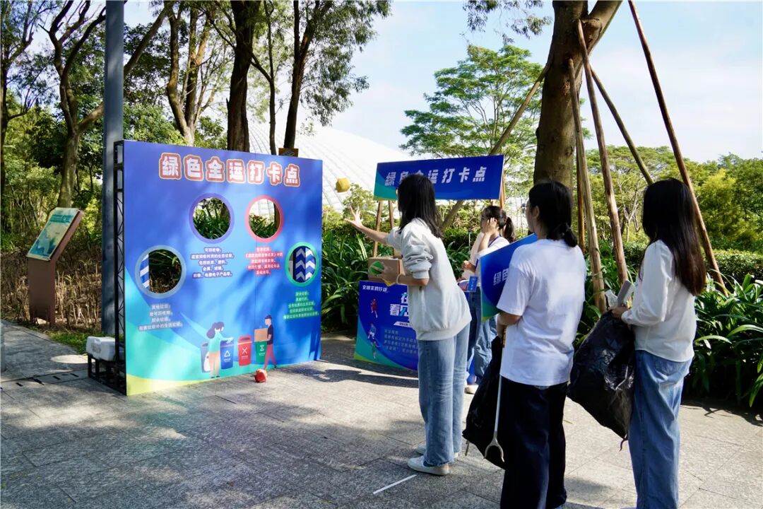 在“绿色全运打卡点”,参加者可通过扔沙包游戏,学习垃圾分类知识。