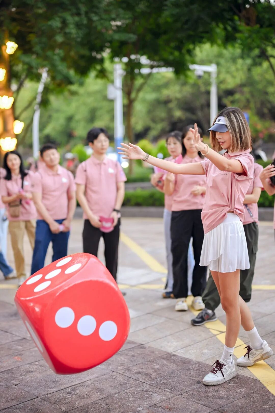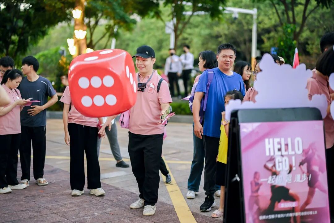 沿途设置3大互动打卡点,分别设有“石头剪刀布”“摇骰子挑战”“幸运猜数字”,挑战成功的小伙伴,还能参与抽奖。神秘大奖引得大家跃跃欲试,现场“甜趣”十足!