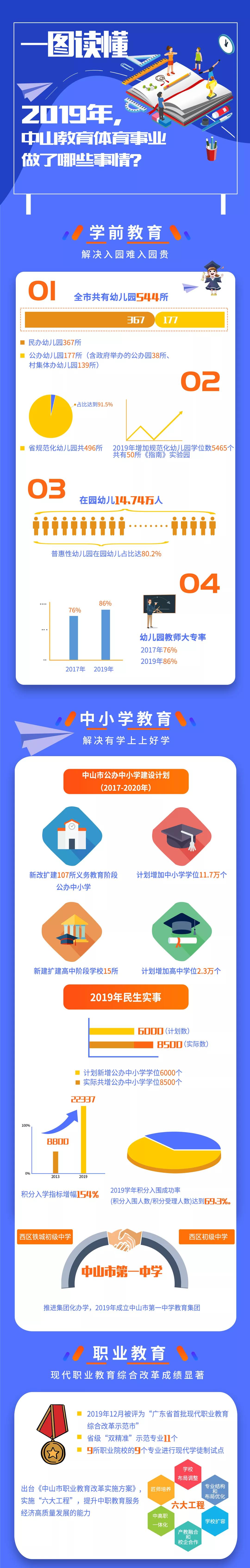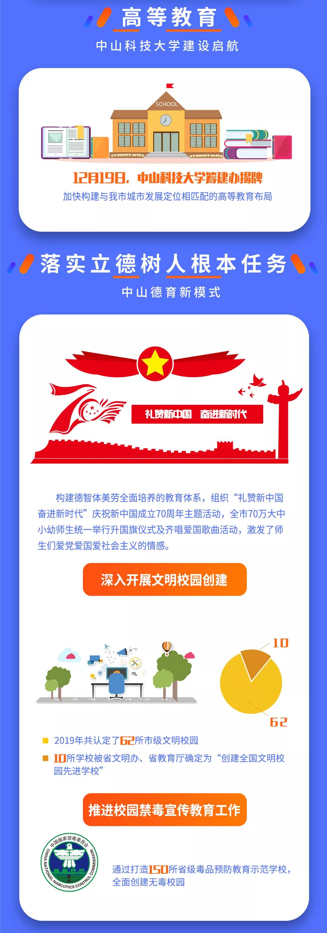 2019年,中山市教育和体育事业都做了哪些事情?又有哪些亮点?带你一图读懂。