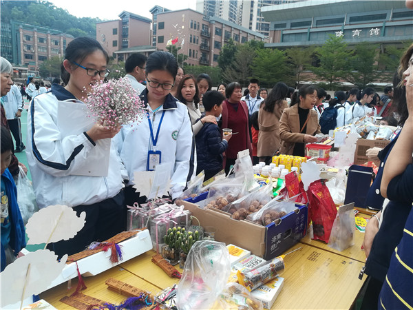 1月1日早上八点半,纪中雅居乐凯茵学校一片沸腾,一年一度的校园爱心义卖活动正在如火如荼地开展,4000多学生和家长一起走上操场,忙着布置自己班级的义卖摊位,操场上各摊位前人头攒动,此起彼伏的叫卖声温暖了新年的第一天。