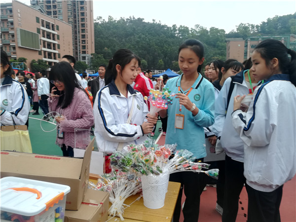 不少初一的新生第一次参加这样的活动感到很新奇,有一位戴着红领巾的初一学生告诉记者,妈妈从家里带来的特色“商品”很受同学们欢迎,他刚才和妈妈一起卖了几十元钱,由于现场人较多,摊位又多,售卖的商品如果不起眼就要卖力吆喝,通过这种义卖活动他学到了不少知识,也体会到助人的快乐。