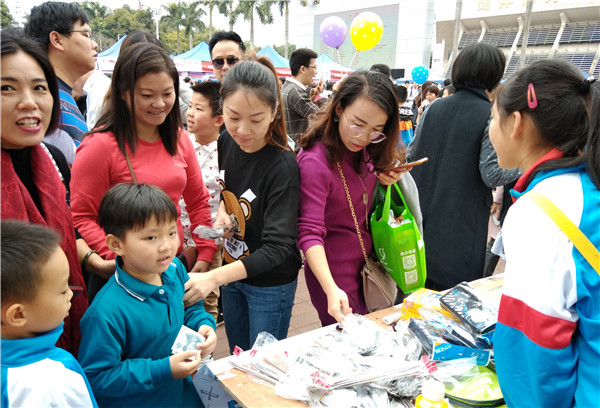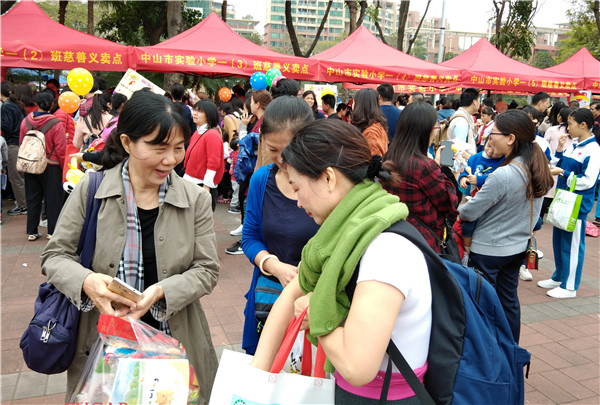 石岐中心小学大信学校的家长左女士在学校摊位上兴致勃勃地销售商品,虽然只是几块钱的笔、小零食和饮料,她依然忙的不亦乐乎。“我和女儿已经是第二年来参加活动,她不仅很乐意参加这样有意义的活动、她自己的改变也是显而易见的。”参加义卖活动后,每次购物看到比较贵的商品时,她总会小声和妈妈表示要换成更便宜一些的东西。