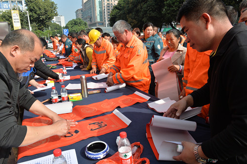 活动现场,黄衍增、吴步里等来自市书法家协会、市青年书法家协会、五桂书画院的10位书法家为近200位环卫工挥毫泼墨,送上新春祝福。
