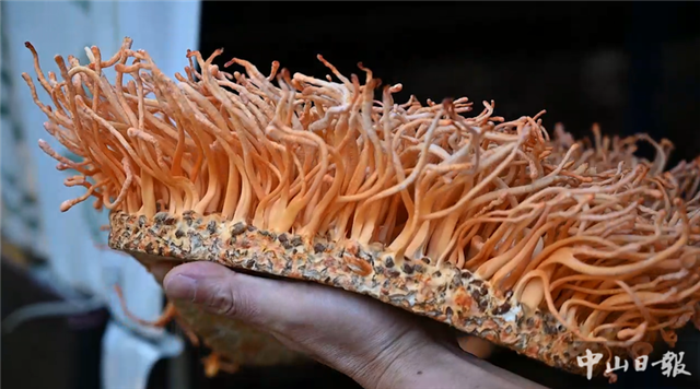 虫草花,欧致文用业界目前最新的方法培养——小麦载体,一般的载体为木糠,用小麦就实现了粮食载体。
