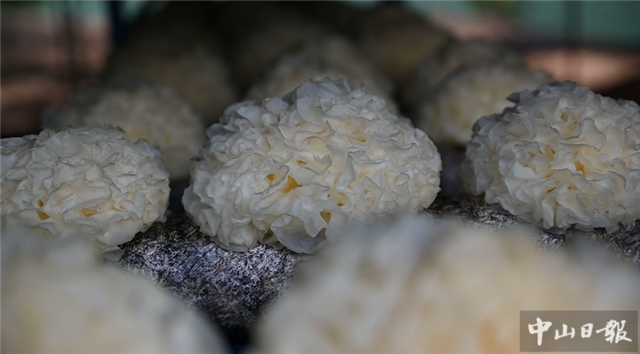记者初到这里是个春日,正好遇见了猴头菇,那个新奇感仍历历在目。蘑菇房里一排排雪白的猴头菇吊着生长,毛茸茸,极之可爱,忍不住要用手去抚摸。