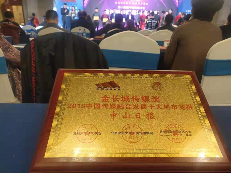 在大会期间举行的“金长城传媒奖”颁奖盛典中,中山日报报业集团荣膺“金长城传媒奖2019中国传媒融合发展十大地市党报”, 中山日报报业集团视觉中心主任林琳荣膺“金长城传媒奖2019中国传媒特殊贡献人物”。